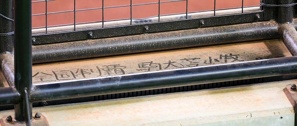 エスコンフィールド北海道で4試合ぶりの登板。本拠地ブルペンのフェンス際には、母校・駒大苫小牧高の後輩たちからの〝メッセージ〟が刻まれている。今夏の南・北北海道大会の準決勝と決勝は、同球場で実施。球児たちがしたためた『全国制覇 駒大苫小牧』、『北海道で1番長く』という決意が、1カ月以上たった今も消えずに残っている。