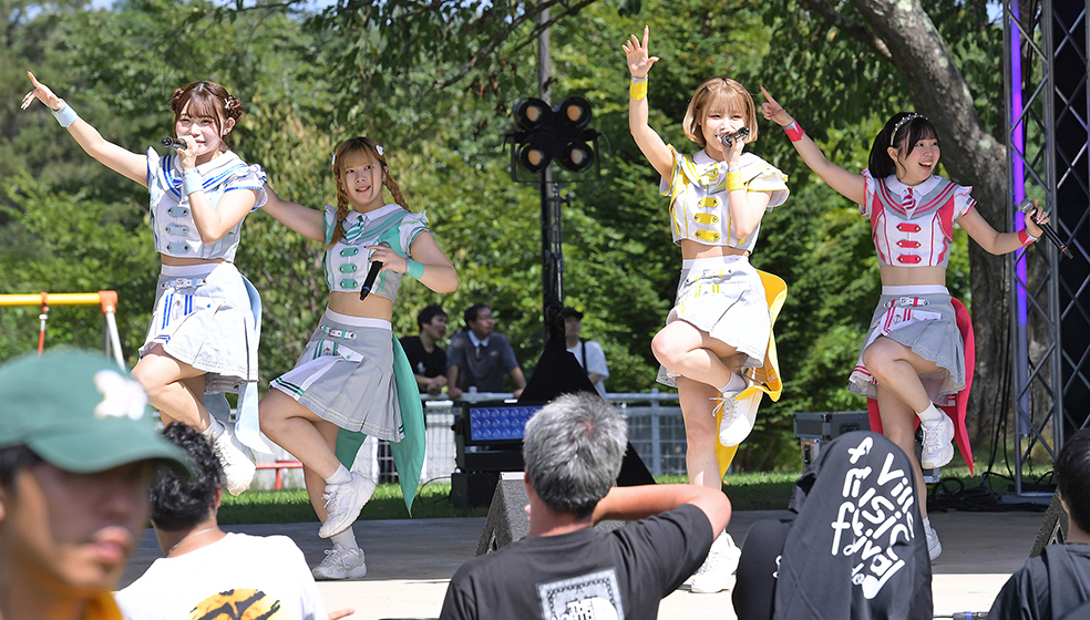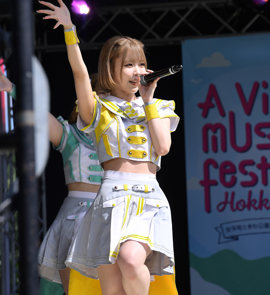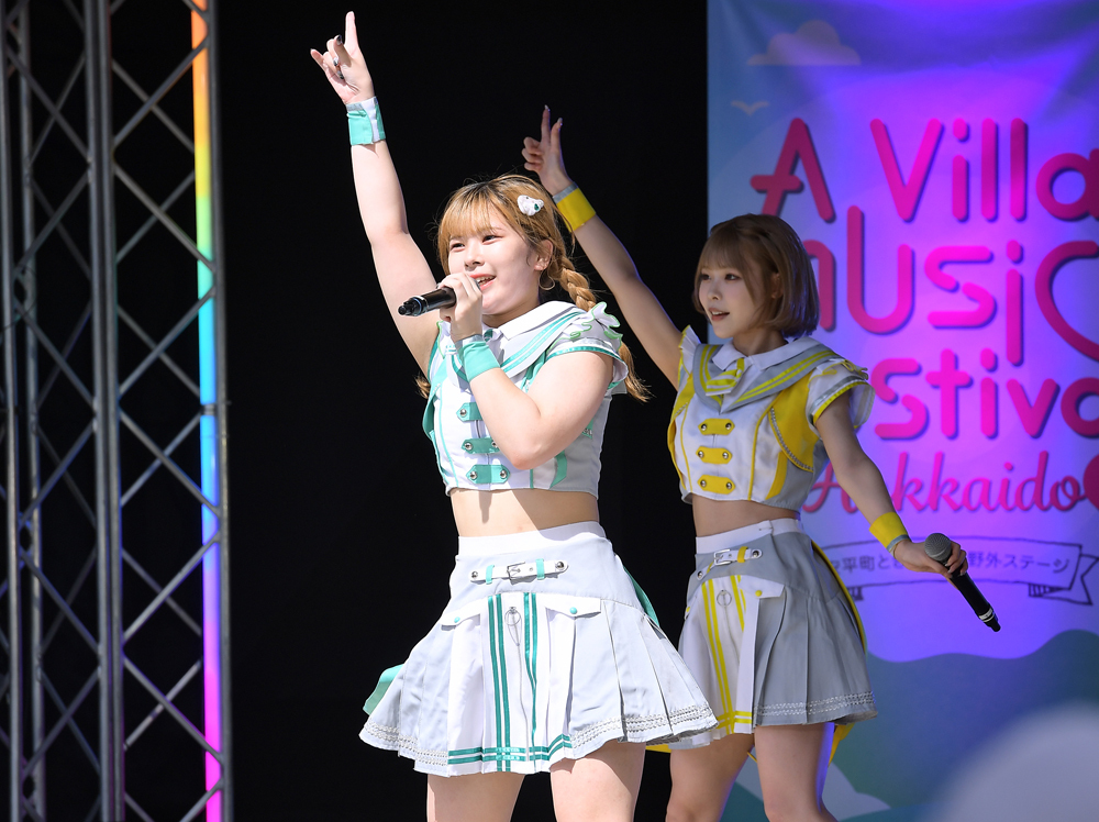 そして、バトンを受けたのはこの日の主役・タイトル未定だ。ステージに登場するやいなや「花」、新曲「夏が来れば」、「黎明」を立て続けに歌い上げた。阿部葉菜が「始まりました~、A Villa music festival!!」とテンションMAX。夏曲「夏のオレンジ」では、ここでも阿部が「この広い大地に負けないぐらいの声を出せますかー!」と煽った。最後は「鼓動」でさらにボルテージを上げるなど、25分間を全力で駆け抜けた。