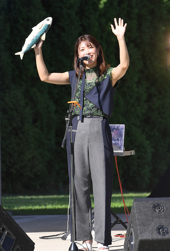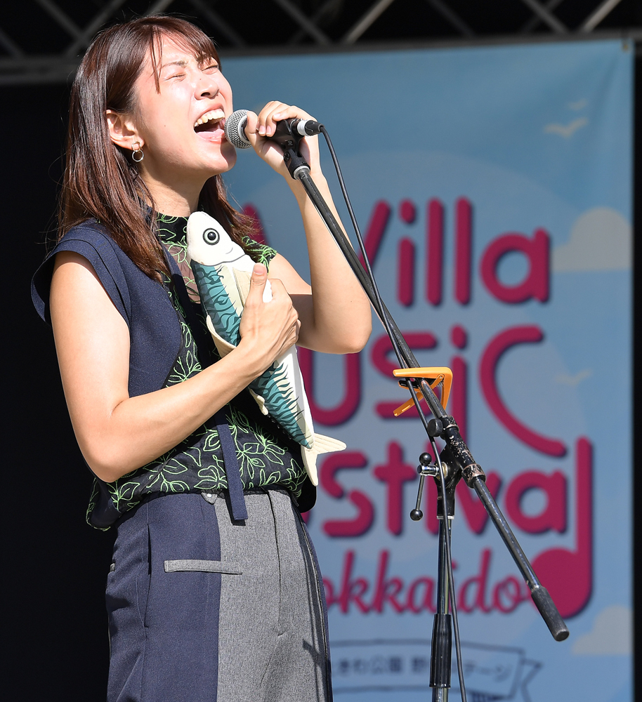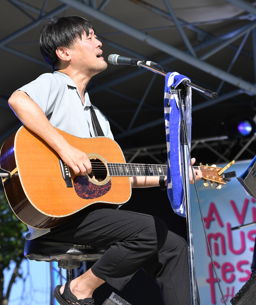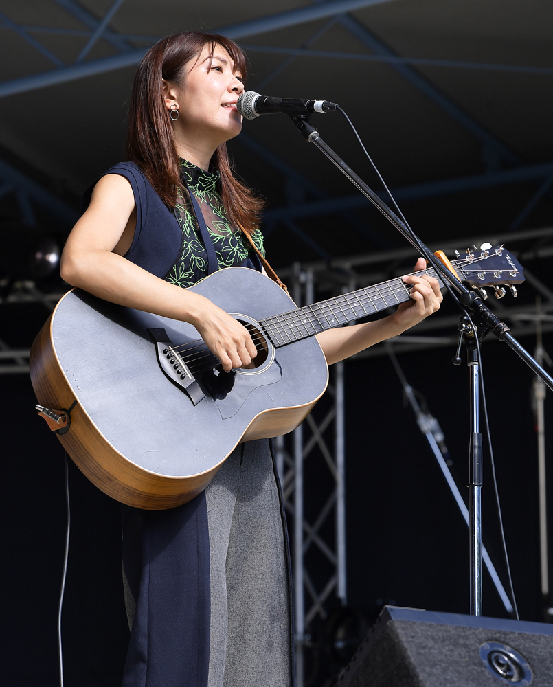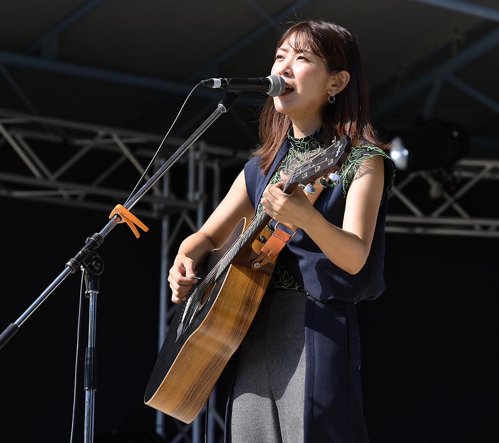 その興奮が冷めやらぬ中、札幌市出身のシンガーソングライター・山崎あおいが雰囲気を一変させた。この日の天気とピッタリの「醒めるような青空」という歌詞から始まる「花咲くを待つ」。透明感のある歌声で、少しせわしなさが漂っていた空気を落ち着けた。「ゆっくりと聴く時間になりますかね。楽しんでいってください」と「サイレン」、「ハルメイト」、最後は曲調と歌詞のギャップが大きい「鯖鯖」と全4曲を歌った。