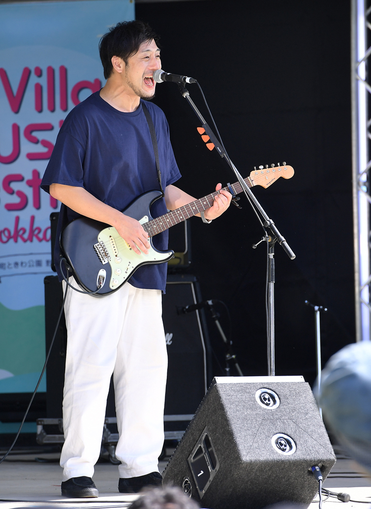 初開催を祝うかのように、安平町には青空が広がった。気温も上がり始めた午前11時。札幌発のロックバンド・TRIPLANEがトップバッターとしてステージに上がった。今年1月に配信した「マイ・ダーリン」で幕を開けた。ボーカルの江畑兵衛が観客に「すごい良い天気。盛り上がろうぜ!」と呼びかけ、フジテレビ系アニメ「ONE PIECE」のエンディングテーマ曲にもなった「Dear friends」など、5曲を披露した。