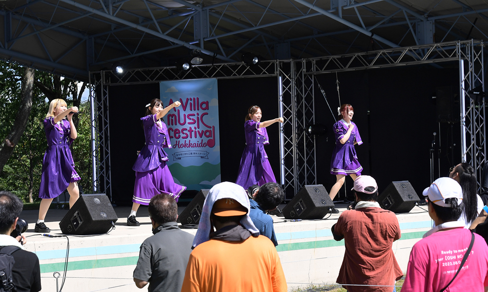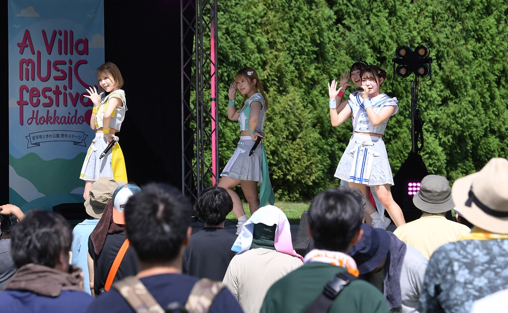 野外音楽フェス「A Villa music festival HOKKAIDO 2023」が3日、安平町ときわ公園で初めて開催された。北海道発の「タイトル未定」ら8組のアイドルと、同グループに楽曲提供している青葉紘季や山崎あおいなど、全12組のアーティストが出演した。