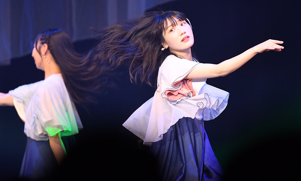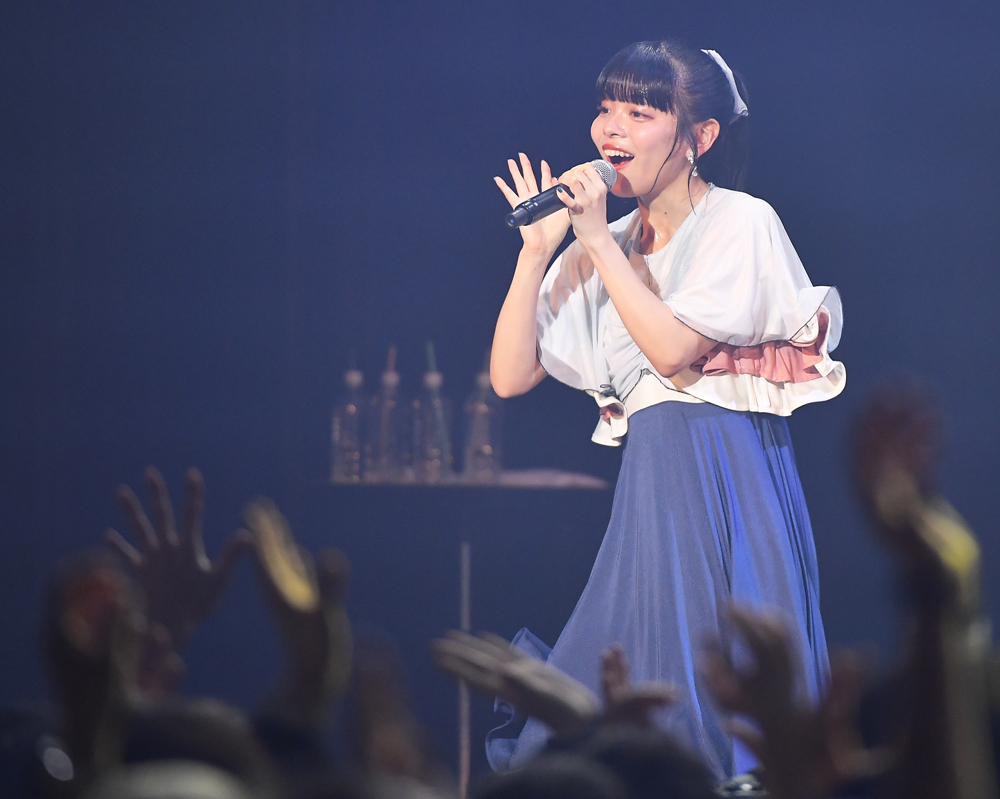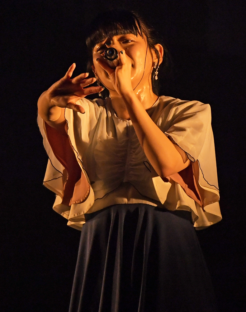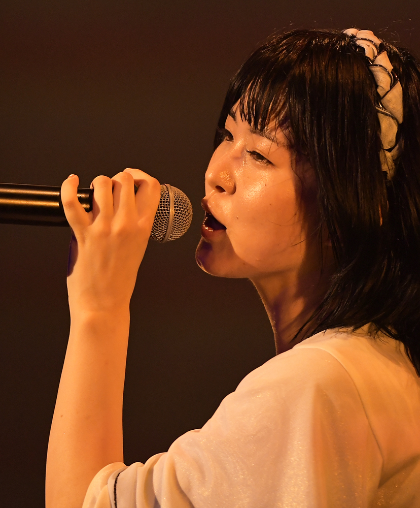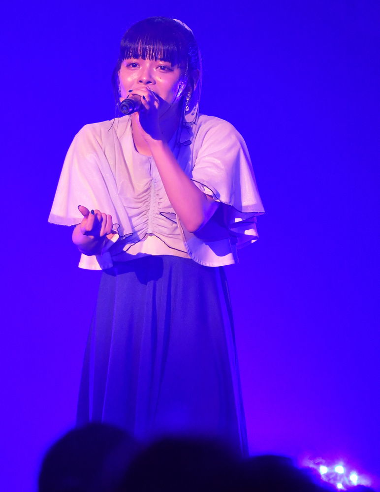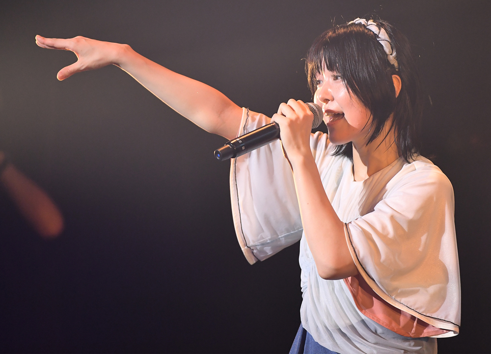 「夏が来れば」「夏のオレンジ」といった夏曲を披露すると、会場のテンションに火が付いた。アッパーチューンの「主題歌」が続いたと思えば、「溺れる」を力強く、かつ感情的に歌い上げて見事な緩急を演出した。そして、新曲「水流」を初披露。谷乃愛が「『薄明光線』と『溺れる』のアンサーソングになっていて、今、私たちがもがきながら進んでいる道の決断の意味を込めた曲になっています」と説明した。その後も「黎明」「花」と息をつかせる暇もなく、楽曲をたたみ掛けていくと、ファンのボルテージは一気に上昇した。