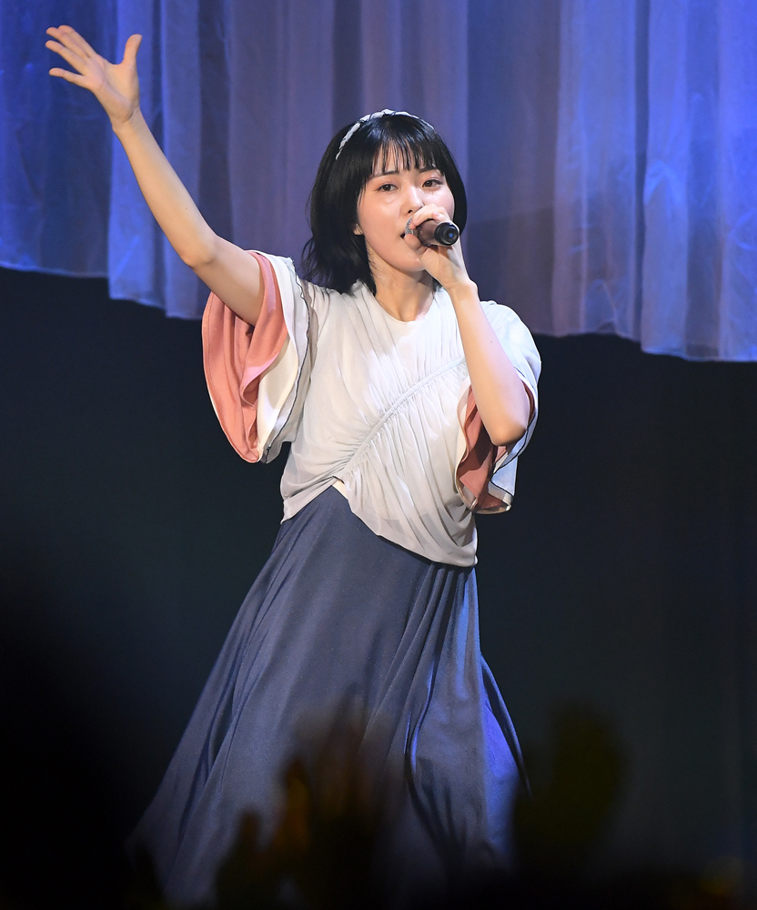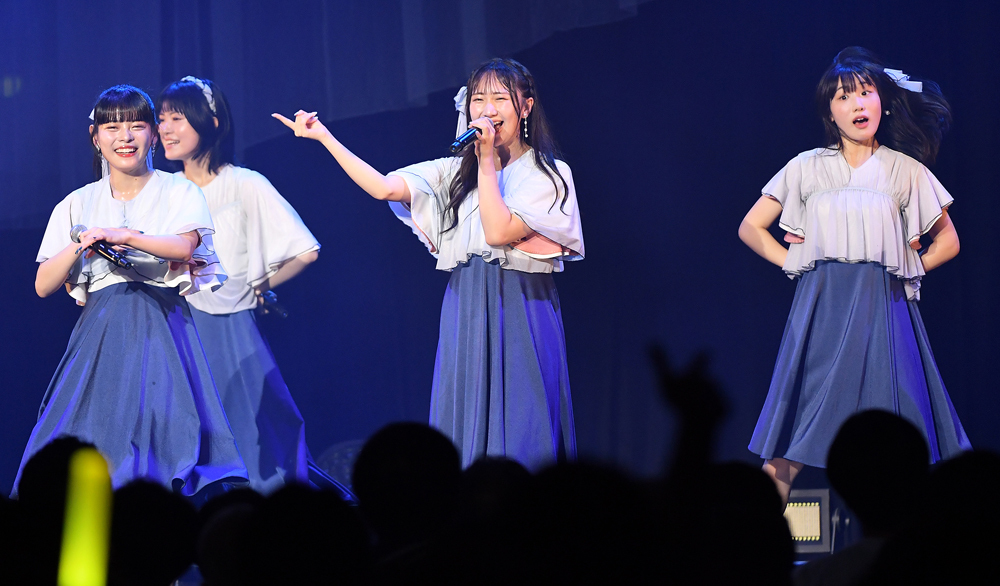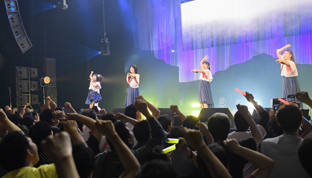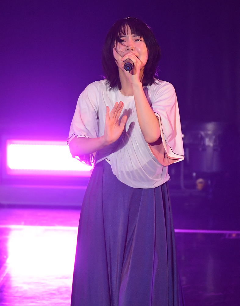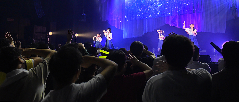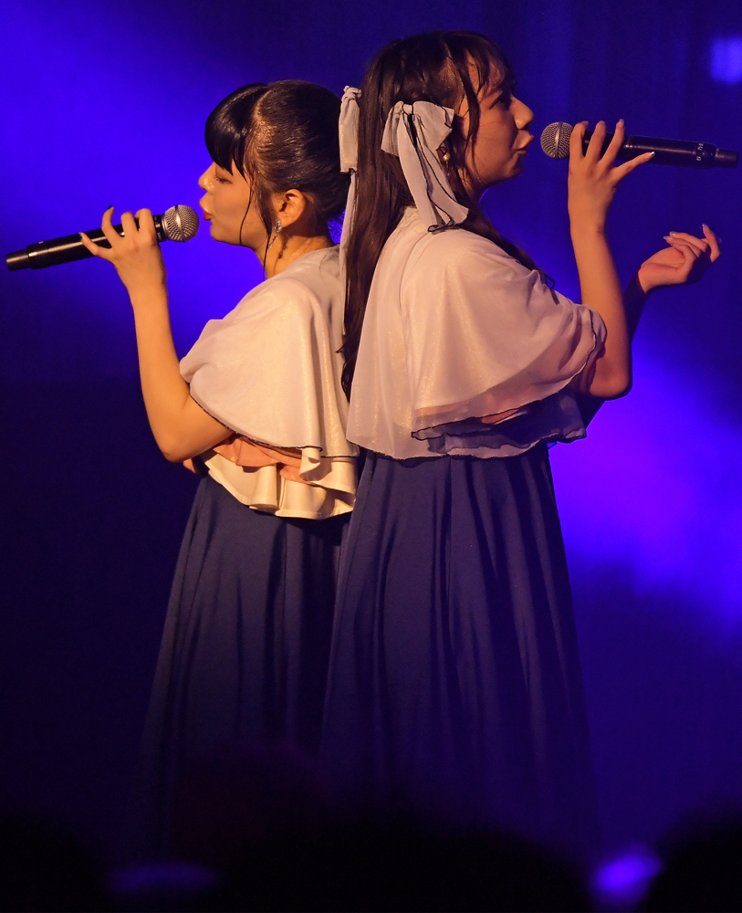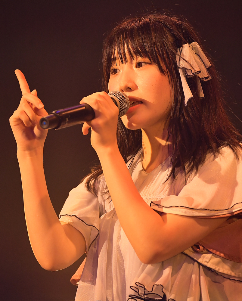 「夏が来れば」「夏のオレンジ」といった夏曲を披露すると、会場のテンションに火が付いた。アッパーチューンの「主題歌」が続いたと思えば、「溺れる」を力強く、かつ感情的に歌い上げて見事な緩急を演出した。そして、新曲「水流」を初披露。谷乃愛が「『薄明光線』と『溺れる』のアンサーソングになっていて、今、私たちがもがきながら進んでいる道の決断の意味を込めた曲になっています」と説明した。その後も「黎明」「花」と息をつかせる暇もなく、楽曲をたたみ掛けていくと、ファンのボルテージは一気に上昇した。