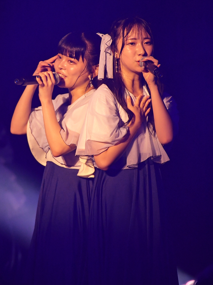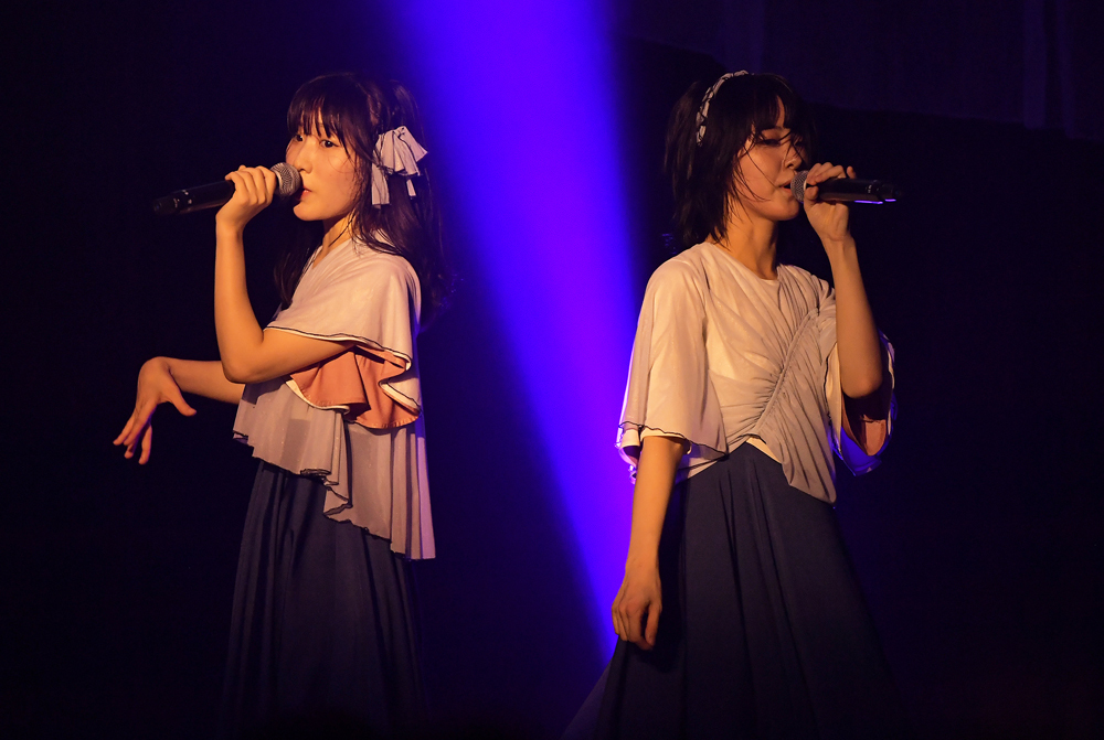 谷の「夏の終わりにピッタリな曲を用意しています」というMCで始まったのは「蜃気楼」。「道標」「灯火」と続き、「にたものどうし」では、冨樫が曲中で「一人きりだった私をここまで連れて来てくれてありがとう。これからもよろしくお願いします」と感謝を口にした。そんなしっとりとした雰囲気が漂う中、「未完成のパレード」で空気をガラっと一変させることができるのもタイトル未定の魅力の一つだ。