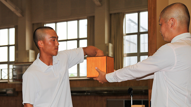 抽選2日前の10日に大役に指名されたばかりの金沢光流新主将(2年)。甲子園からの帰道後、2年生以下の練習で自主的にチームを引っ張ってきており「なんとなく自分が主将だと思っていました。やるしかない。去年は準優勝だったので、今年は優勝。神宮大会と選抜に出ることが目標」と、1年前のリベンジを果たし、代またぎの甲子園出場の難関に挑む。