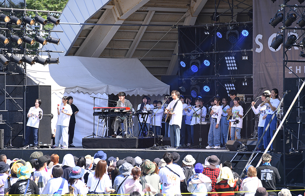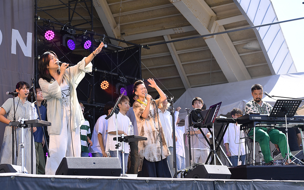 続いては、メジャーデビュー10周年を迎えたwacciがステージに上がった。最後に演奏した「大丈夫」では、ウェルカムステージで登場した吹奏楽部がバックで演奏し、温かい空気が広がった。稲泉りん、高橋あず美、植松陽介によるユニット・ぐでんぐでんのステージでも、北海道大のアカペラサークルNoSeRaがコラボし、美しいハーモニーを響き渡らせた。