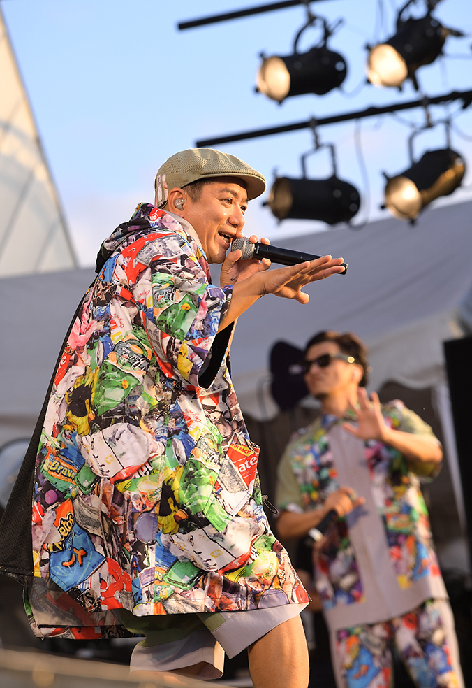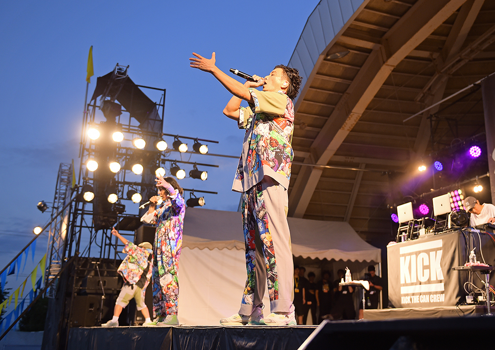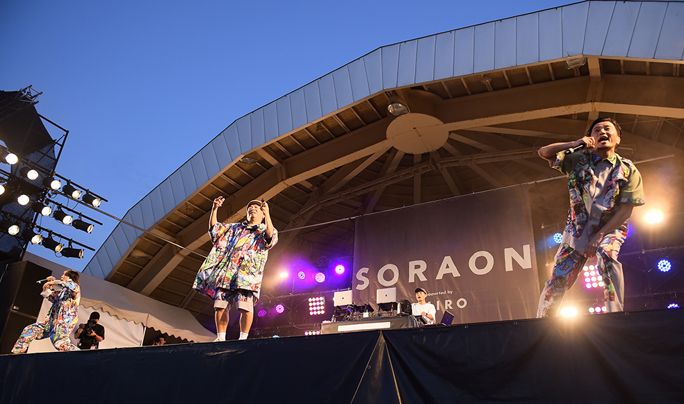 日の入りが近づいた午後5時10分。KICK THE CAN CREWが、会場のボルテージを一気に上げた。KREVAは「山に日が掛かっている感じで、みんなが自由に揺れている。いろんな人がいて最高です!」と「SORAON」ならではの景色に感銘を受けていた。「千%」「地球ブルース337」「イツナロウバ」「アンバランス」「マルシェ」などを披露。観客も一体となり、大地を揺らすようなパフォーマンスを見せた。