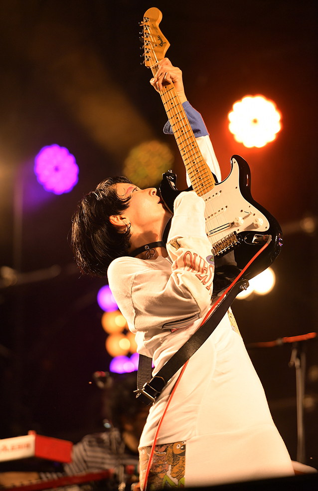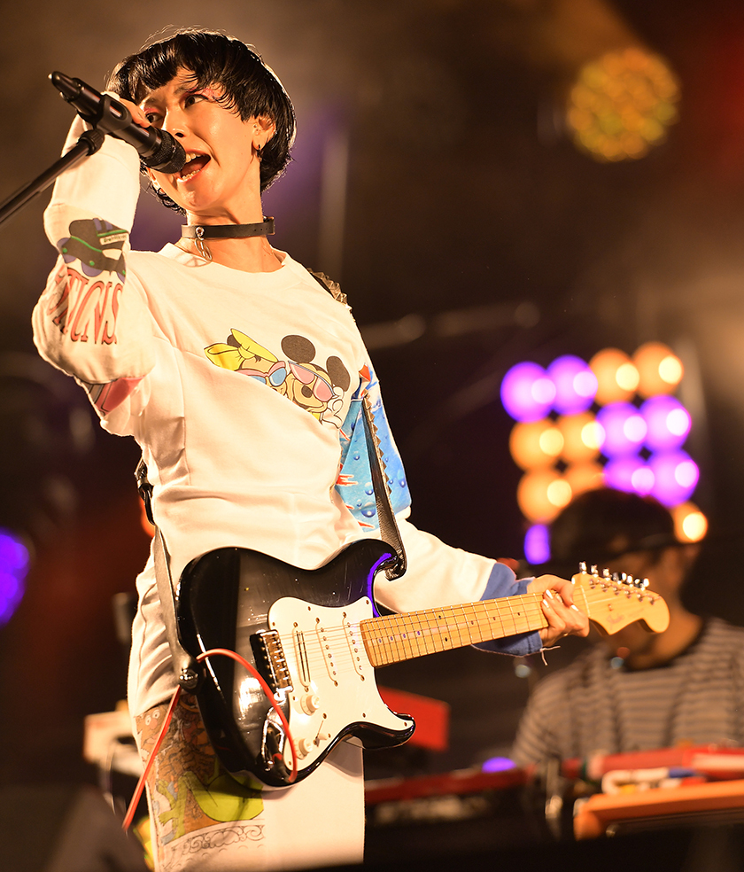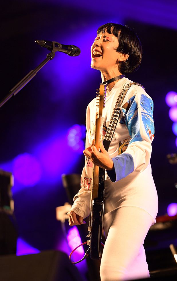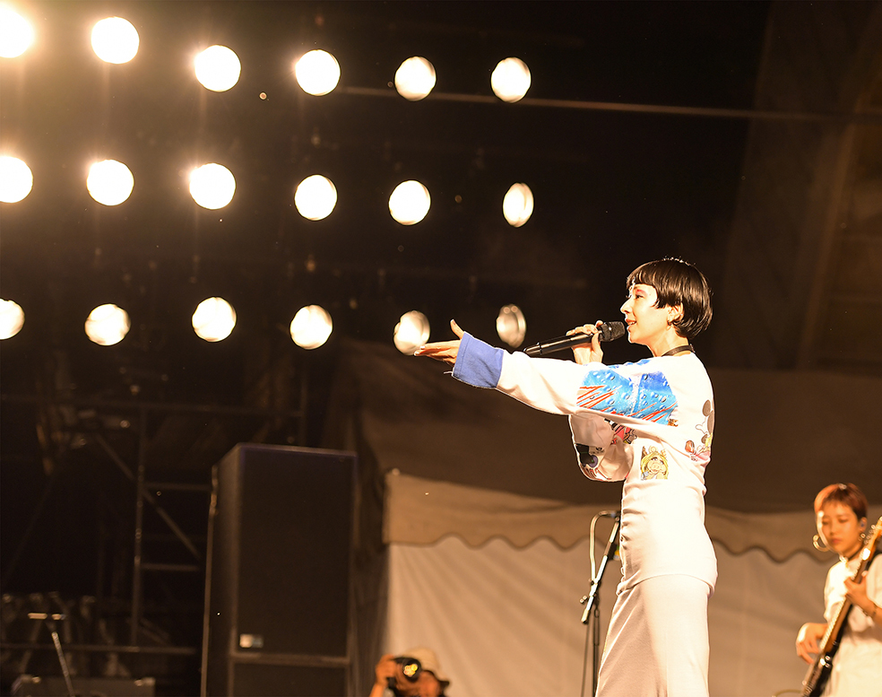午後3時10分からはサンセットステージが開幕し、北海道出身のロックバンド・Galileo Galileiが「夏空」から「青い栞」までの7曲を歌い上げた。続いては、音楽フェス初出演の満島ひかりが登場。ステージに西日の差し込む中、いきなり朗読からスタート。「暑い中、朗読? って感じですよね。そこはご愛嬌で」と笑った。その後、ぐでんぐでんがサポートメンバーとして登場し、SOIL&"PIMP"SESSIONSが作曲と編曲、自身が作詞した「eden」、MONDO GROSSOの「ラビリンス」を歌唱した。最後は「おまけ!」と、宇多田ヒカルの「First Love」の1フレーズを歌って、ステージを後にした。