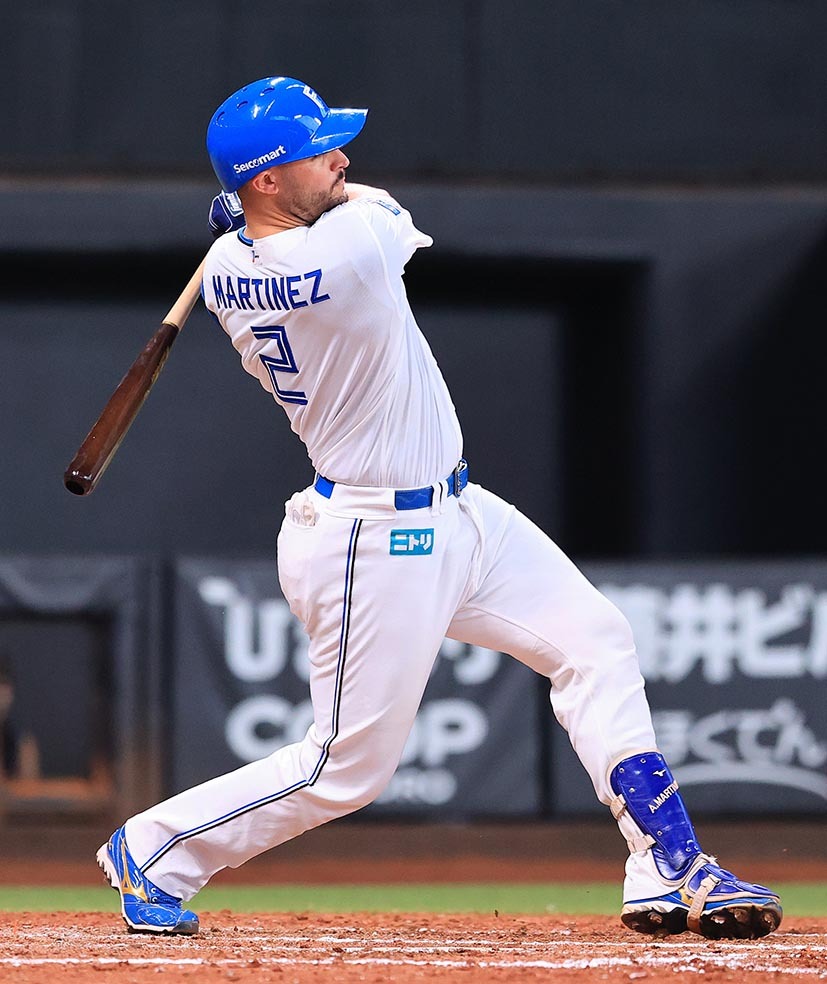 ■五回1死一、二塁で左前適時打を放ったマルティネス