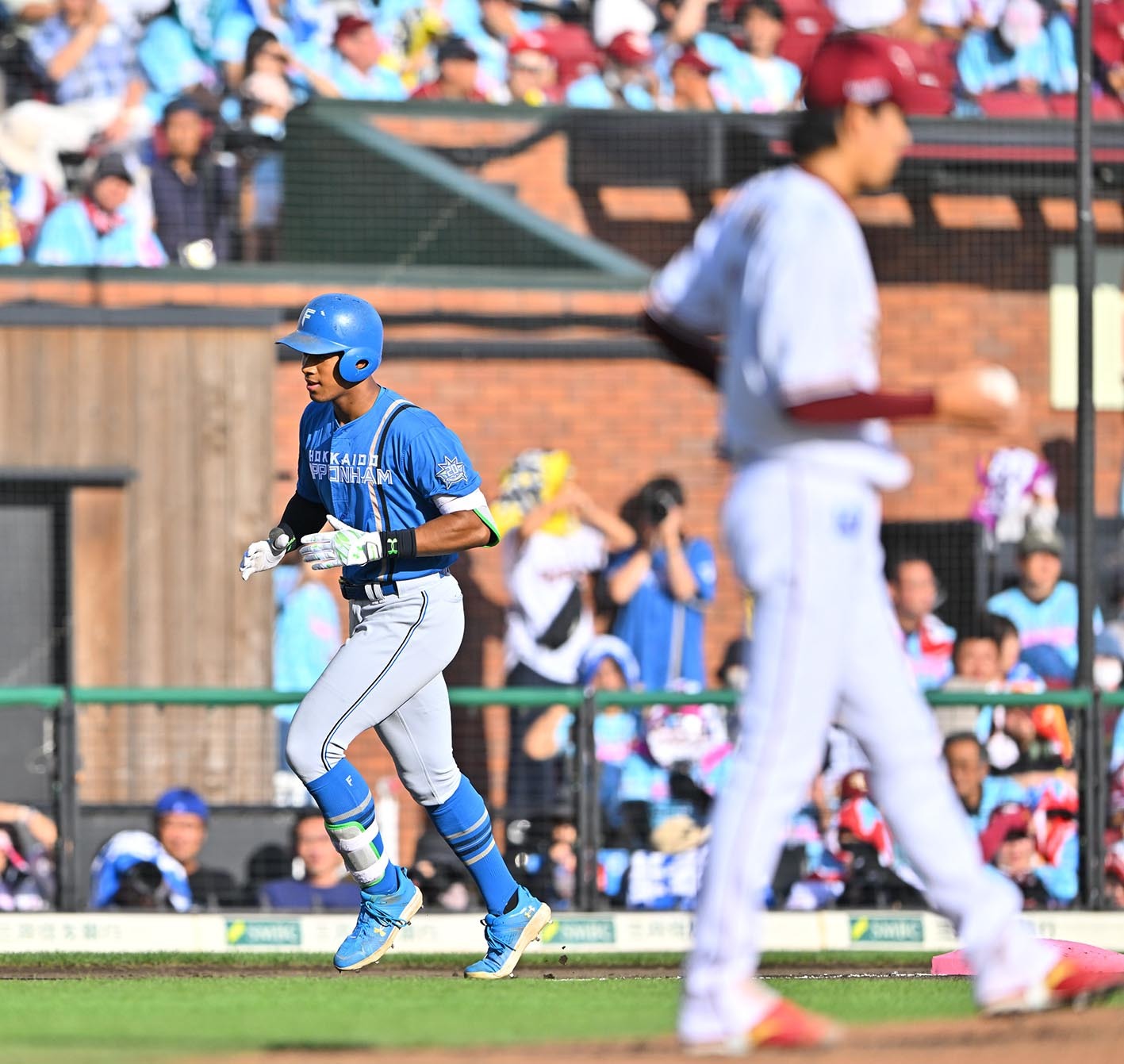 本塁打王の座が、はっきりと視界に入ってきた。日本ハムの万波中正外野手(23)が23日、楽天戦でリーグトップに1本と迫る24号ソロを放った。