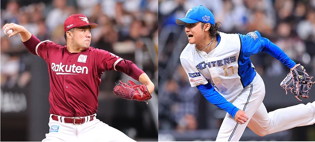 楽天先発の田中将(左)と日本ハム先発の伊藤