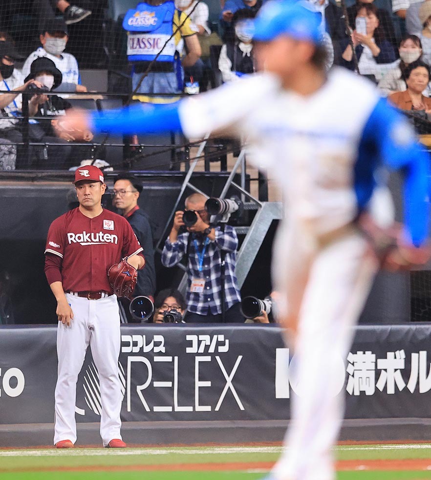 この日、田中将は7回1失点で降板となり、伊藤は「ちょっと先に降りられてさみしかったですけど」。メジャー経験もある先輩右腕と投手戦を繰り広げ、「落ち着きというか、どっしり投げている。勝負どころのボール球だったり、カウントを取りにきた球の使い方というのを勉強させてもらいながら投げていた。きょうは田中さんに引き出してもらった部分がすごく大きかった」と感謝した。