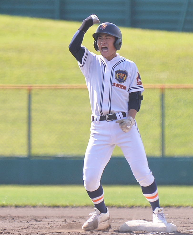 バットでも自らを援護。0-0の四回2死三塁から直球を左前に運び、自ら均衡を破った。2021年春に野球部が復活してから、未だ支部予選突破はできていない。「3年生が土台を作ってくれたので、自分たちがその土台を踏み固めて、全道に文教の名を残したい」。悲願達成に向け、まずは第1関門を突破した。