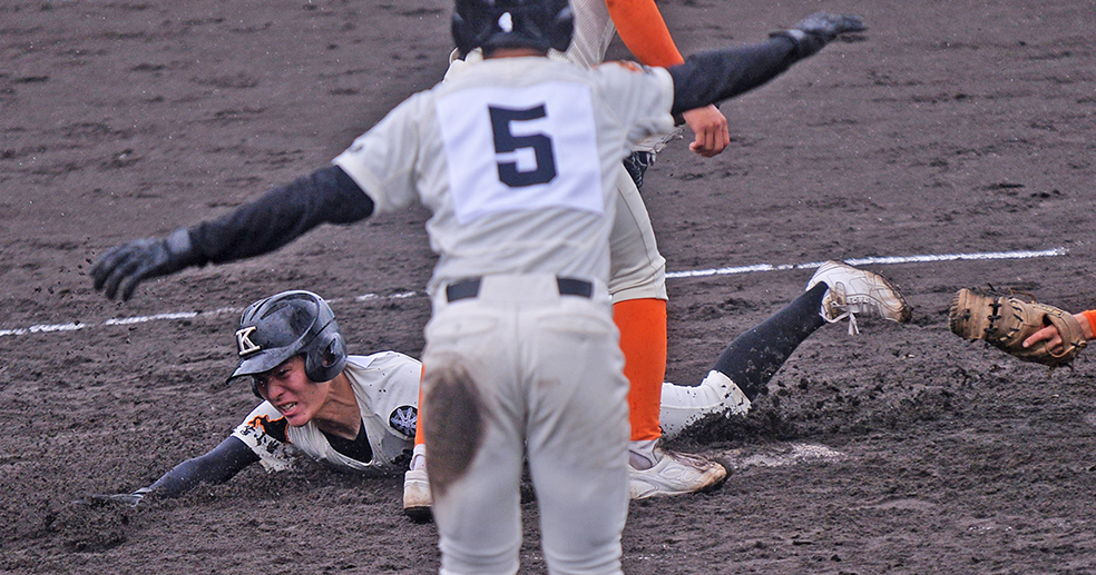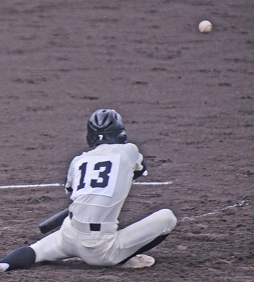 迷いはなかった。1点ビハインドの四回1死二、三塁と一打同点の好機を迎えると、打席の茶木は初球からスクイズを敢行。外角低めのボール球で難易度の高い犠打となったが、膝を折り曲げながら何とか食らいつき捕手前に転がした。一塁へ転送されている間に、二走の小林航太郎主将(2年)も躊躇なく三塁を蹴り一気に生還し逆転に成功した。佐々木孝介監督(36)は「(2ランスクイズの)サインではないです。キャプテンが積極的にやってくれた」と小林主将の好走塁を称えた。