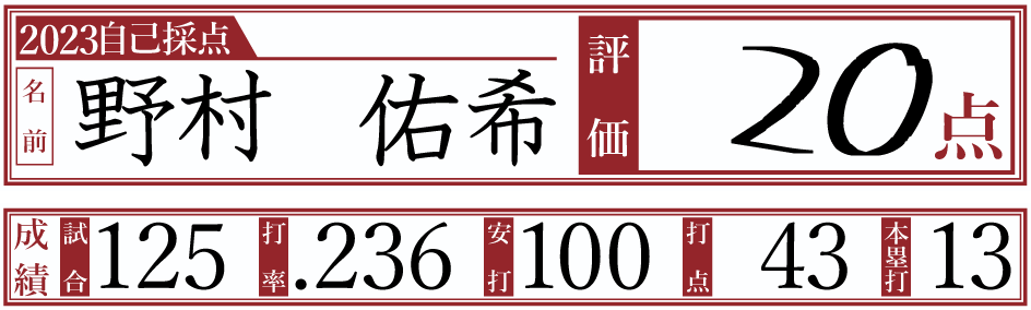 2023自己採点~野村佑希の場合~ けがせず自身初シーズン100安打達成