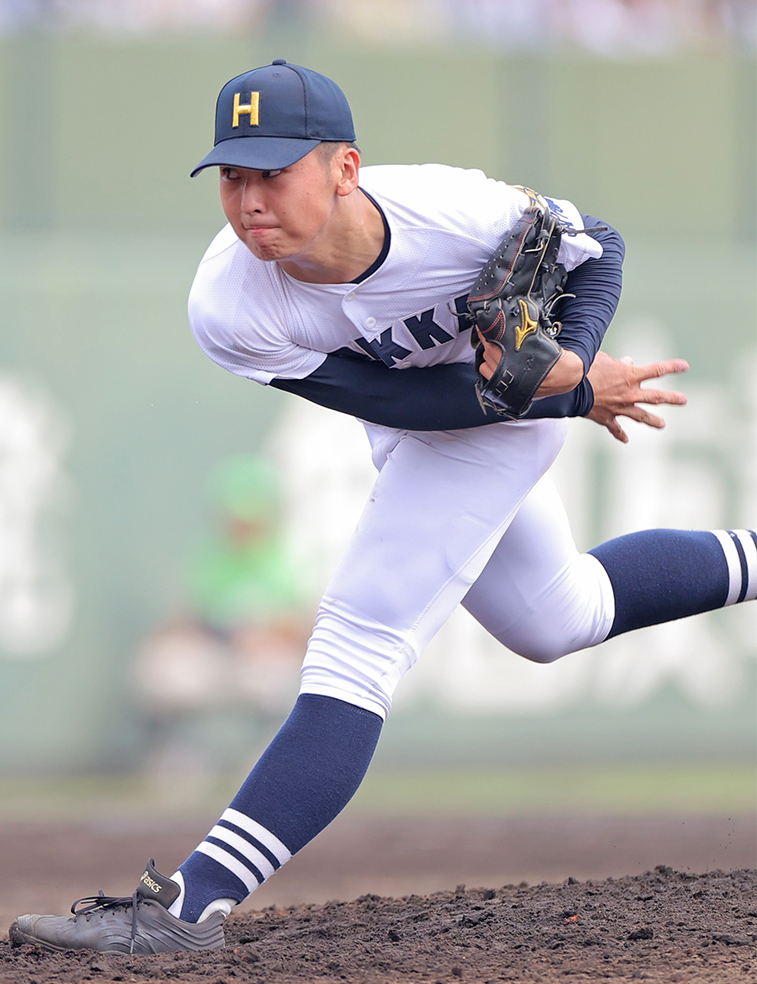 0-1の七回に再登板。先頭を三振に打ち取ると甲子園では初めての3者凡退。打線にリズムを与える投球で直後の同点劇につないだ。明豊戦では2四死球だったが、浜松開誠館戦では5回⅓を無四球。「コースも高さも決め切れた。スライダーが生かせたかな。4回通して投げられたのと、七回にマウンドに戻って3人でしっかり打ち取れた」。春先に熊谷陽輝(3年)が右肘を痛め、押し出されるようにエースを務めたが、甲子園のマウンドで堂々と投げる姿は伝統校の背番号1にふさわしい姿だった。