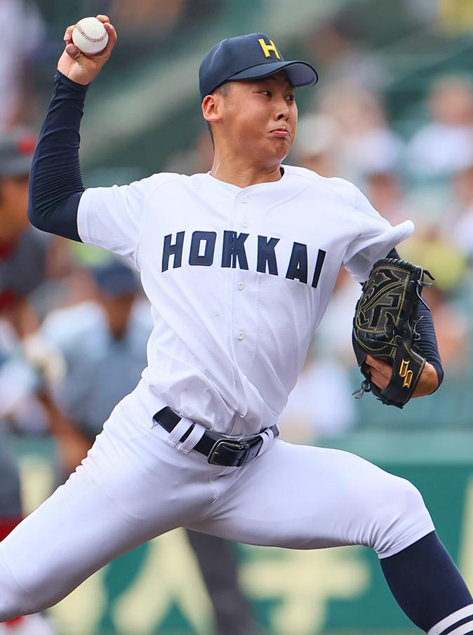 〝代役エース〟から甲子園で真のエースに成長した。春から北海のエースナンバーを背負う岡田彗斗投手(3年)は、1回戦の明豊戦で途中救援も屈辱の2回⅓で6失点KO。それでも2回戦の浜松開誠館戦で見事に立ち直り、先発と救援の2度登板し計5回⅓を1失点、9奪三振と7年ぶりの16強入りに貢献した。