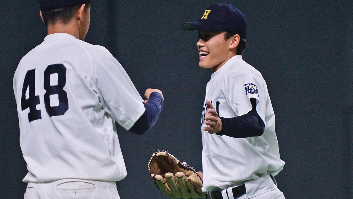 リーグ戦では不振だった3番の江川輝琉亜のバットが火を吹いた。0-0の三回1死二塁から低めのスライダーをうまく拾い中前適時打で先制点をもたらすと、3-1の七回には右翼席へ3点本塁打。江川は「決定戦こそは自分が決めてやるぞという思いで打席に入ってます。1年春から使ってくれた監督さんに向けた一打を目指していきたい」と三垣監督への〝恩返し〟を誓った。