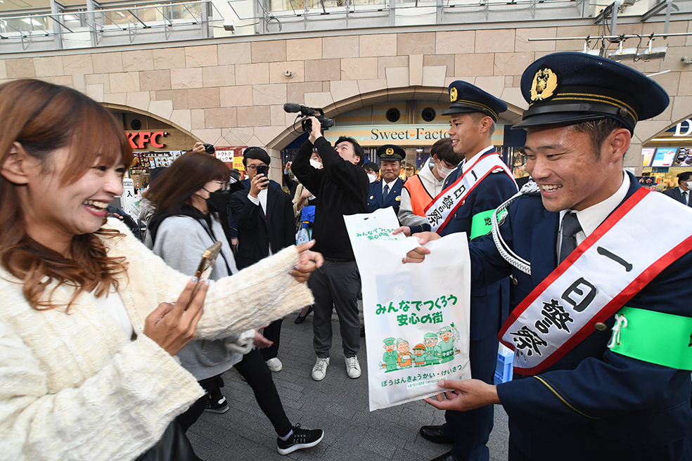 大役を任された2人は警察官の制服に身を包み、緊張混じりの表情でステージに登壇。だが一日署長の委嘱状を手渡された直後の就任あいさつで「本日は一日警察署長として、皆様と一緒に特殊詐欺や子供、女性を狙った各種犯罪被害の防止を啓発し、地域の安全のために少しでも協力させていただきたいと思います」と小柏がコメントすれば、大森も「私たち2人はFWとしてプレーしていますので、本日は攻めの気持ちで、皆様の心の中に防犯の気持ちを届けられたらいいなと思っています」と意気込みを語り、堂々とした立ち居振る舞いで会場に訪れた人々に防犯への協力を呼びかけた。