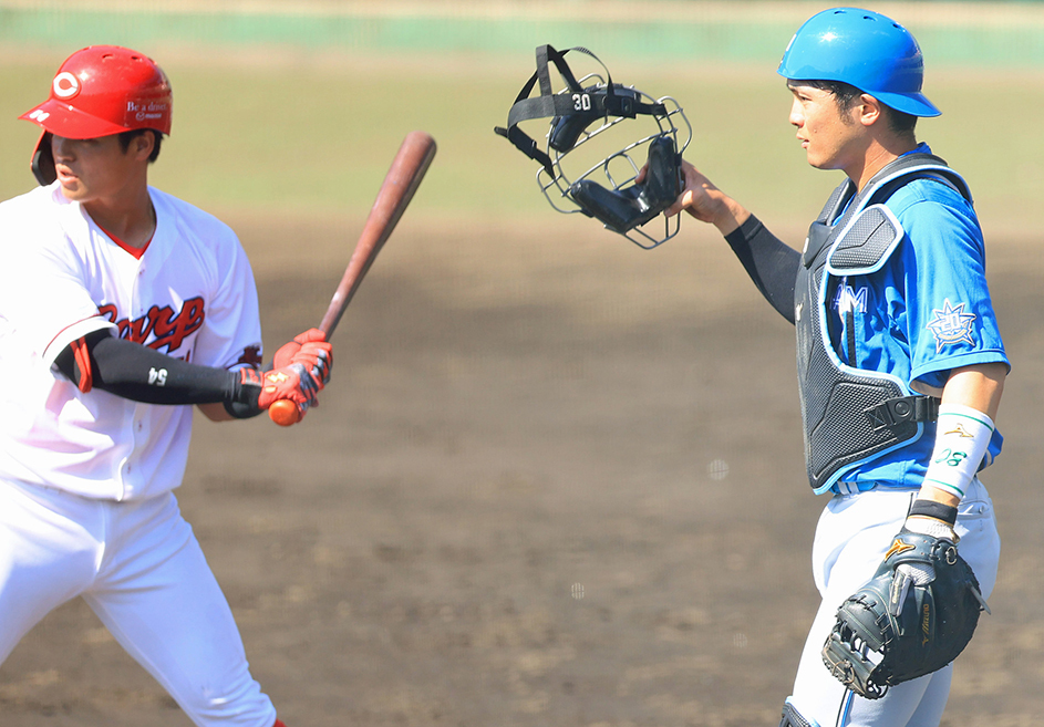 今回は捕手登録の選手が5人帯同している。10日は田宮が3度、11日は古川が1度、盗塁を刺した。水面下で、バチバチと火花を散らしている。この日、マスクをかぶった郡司も負けていない。二回1死の場面、正確なスローイングで宇草の盗塁を阻止した