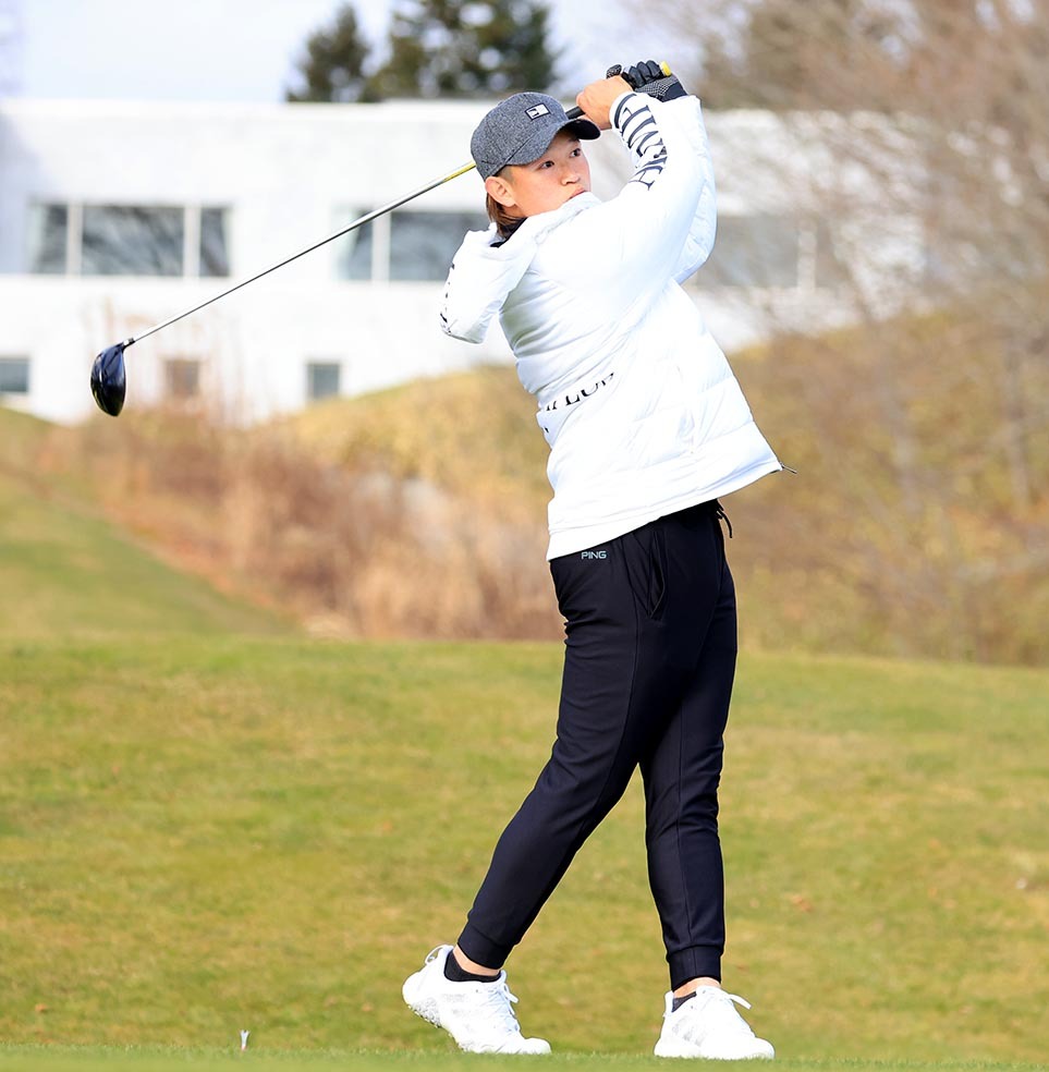 22年11月に行われた選手会納会ゴルフでティーショットを放つ鈴木