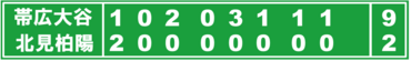 北見柏陽は0-1の一回2死一、三塁で5番の山内悠生投手(2年)が2点二塁打を放ち、逆転に成功。だが、二回以降はわずか1安打と振るわなかった。