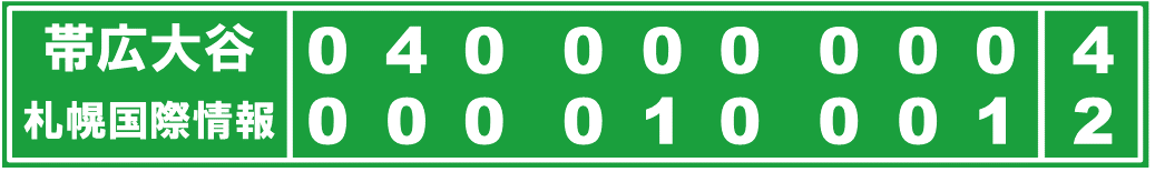 4-1で迎えた九回裏2死一、三塁から相手失策により2点目を奪ったが、最後は栄田の三塁ゴロでゲームセット。帯広大谷が4-2で逃げ切った。