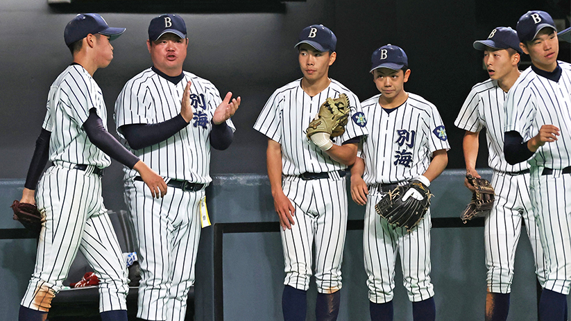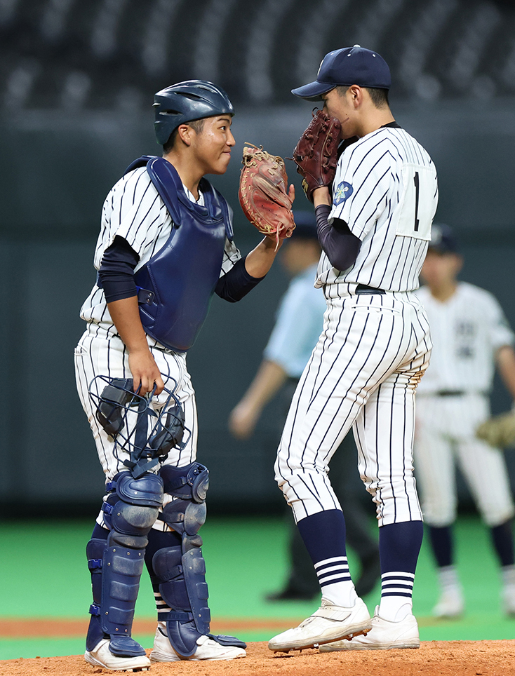 味方が八回に1点差に追い付いてくれた直後、堺投手の右腕が限界を迎えた。先頭に四球を与えると、1死一、三塁からスクイズで追加点を献上し、その後3者連続四死球で押し出し。七回途中、144球で降板した。救援した立蔵諄介投手(1年)も2点打を浴びて、この回4失点と突き放された。島影監督は「彼は責められない。1人で踏ん張って、頑張って投げてくれた」とねぎらった。