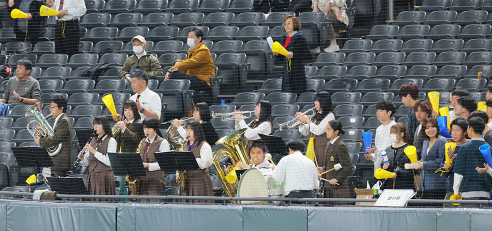ブラスバンド10人、保護者、OBがスタンドから応援