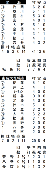 終盤3イニングはお互いに好機をつくるものの、北海・松田、東海大札幌高・矢吹太寛(1年)の両投手が譲らず、延長タイブレークに突入した。そして延長十回、北海は矢吹の適時失策で勝ち越すと、その後も2本の適時打と押し出し死球で畳みかけた。4点のリードを受けた松田もその裏の反撃を許さず、155球の完投勝利を挙げた。北海は夏の甲子園に続き、来春のセンバツ甲子園出場も確実にした。同一年の春夏秋道大会優勝は2004年の駒大苫小牧以来、19年ぶりの快挙。北海の平川敦監督(52)も「すごいですね。うれしい気持ちです」と喜んだ。