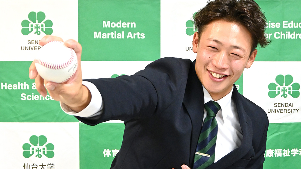 仙台大・辻本(北海高出)が中日から3位指名「G・G賞を取れる選手になりたい」【ドラフト会議】