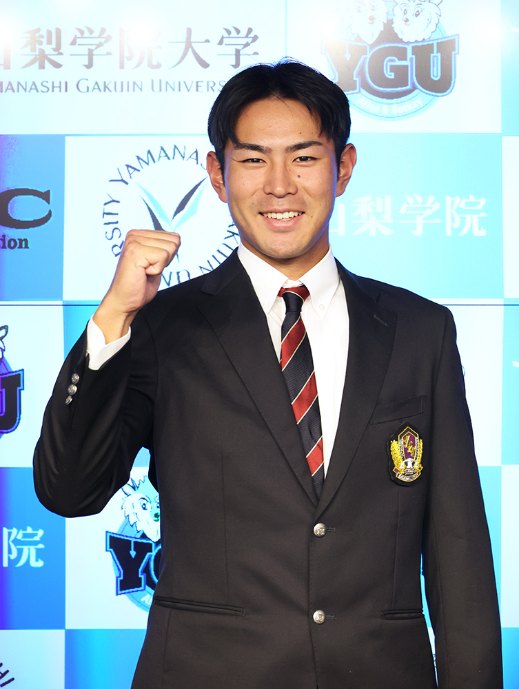 ■プロフィール 宮崎 一樹(みやざき・かずき)2001年8月30日、東京都生まれ。右投げ右打ち。走攻守のバランスが揃った大型外野手。遠くへ飛ばす能力が魅力で、スイングスピードも速い。山梨学院大で急成長し、関甲新リーグではベストナインや最多盗塁賞に輝いた。日米野球選手権にも出場。50メートル5秒台の俊足も武器。身体能力に優れ、俊足と強肩は即戦力。184センチ、84キロ。