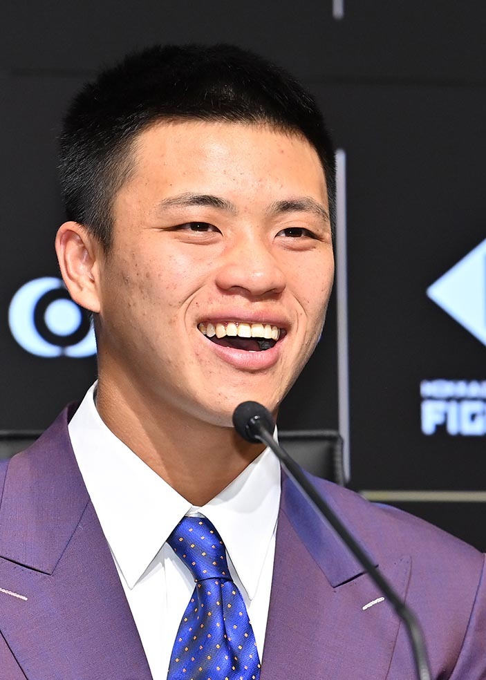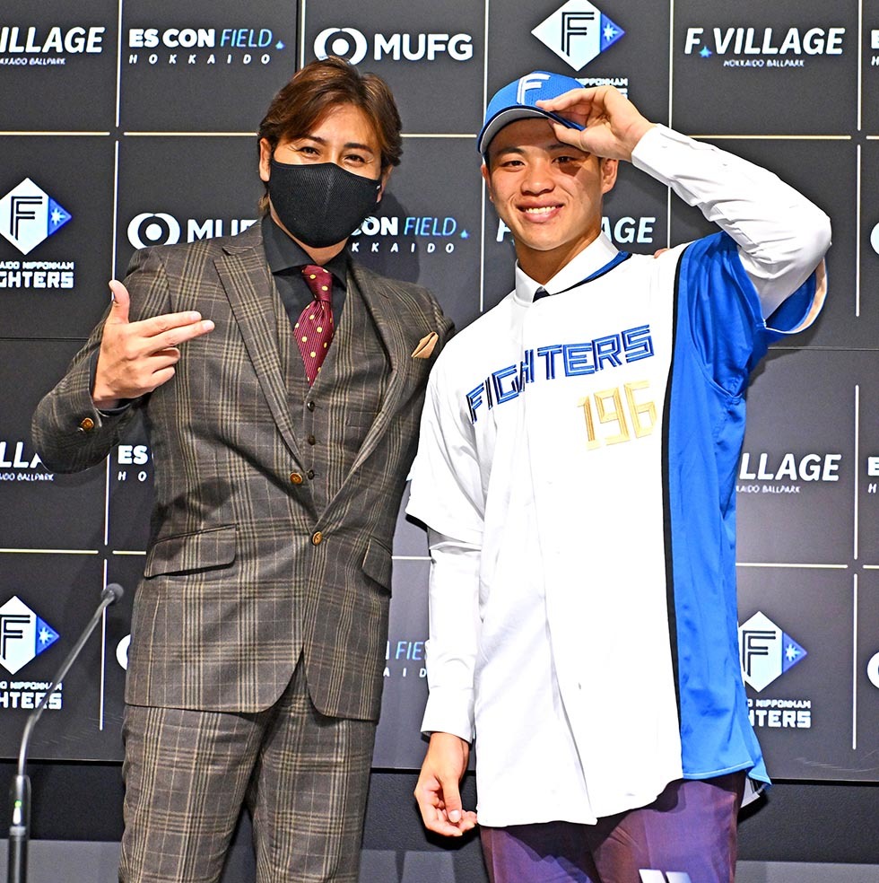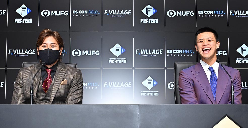 「最初、孫くんのピッチングの映像を見た時に、こんなに良いピッチャーを獲れるわけないだろと思ったんですよ。メジャーが2球団以上、日本の球団が7、8球団、その中でうちに来てくれる可能性は僕の頭の中では20%ぐらいかなと思っていて。でも孫くんの目標はメジャーリーガーなので。その中でファイターズがダルビッシュ有、大谷くんをつくり上げて、それがすごく大きいということで孫くんはファイターズを選んでくれた。ちょうど3日前、来年のオールスター明けに背番号2桁を獲得して、ソフトバンク戦(に登板し)、3―1で勝つ夢を見た。それが正夢になってくれたら最高かなと思います」