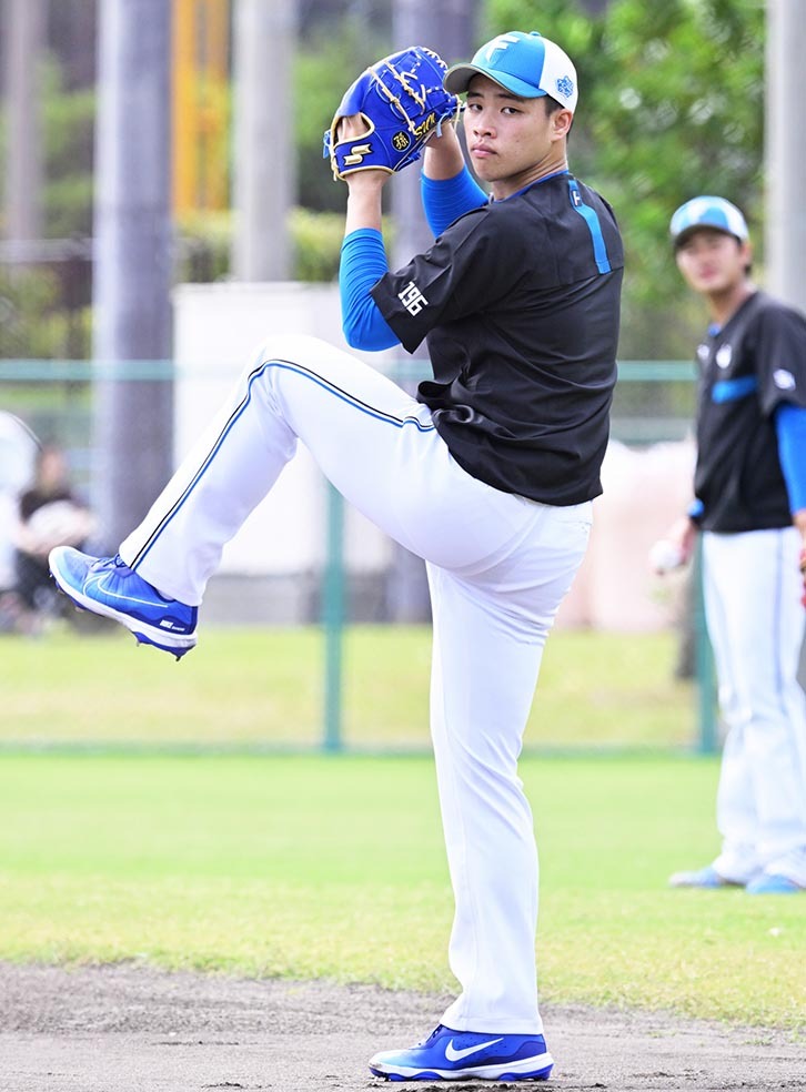 156キロ右腕が、大器の片鱗を見せた。キャッチボールは塁間程度の距離ながら、スピンの効いたボールを幾度となく繰り出した。しなやかな腕の振りから、浮き上がるような球筋を描き「前回から5日ぐらい間が空いていたので、きょうは近めから。またこれから(肩を)つくっていこうかなと思っています」と意気込んだ。