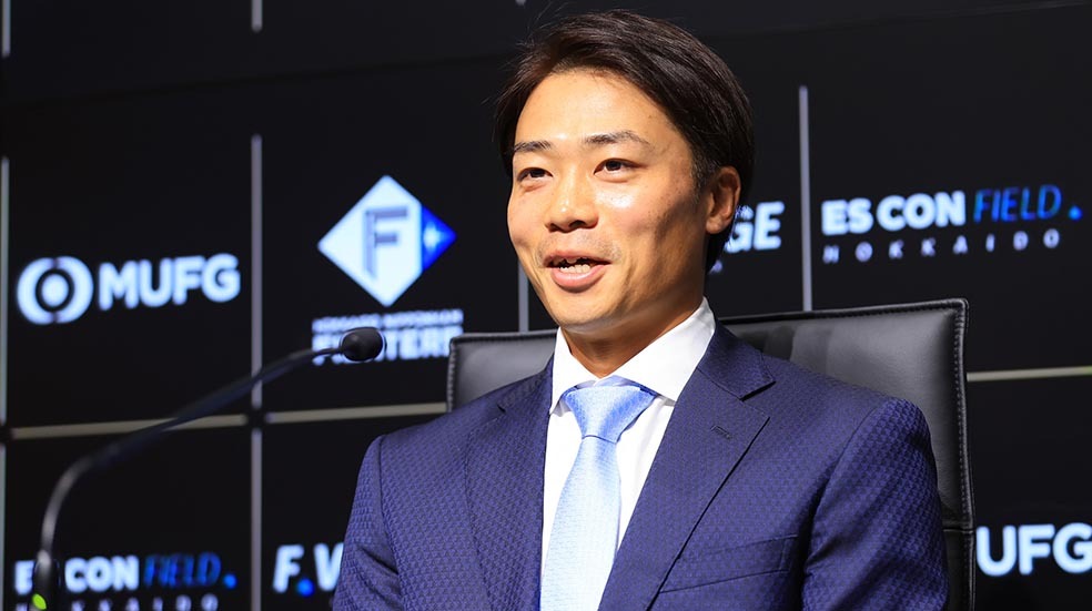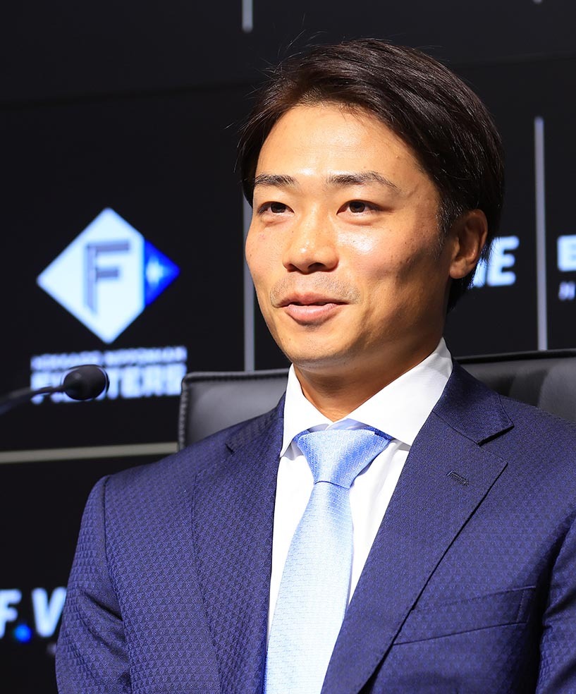 「来年もファイターズのユニホームを着てプレーできるので、チームの勝利に貢献できるように。エスコンでもっともっと試合に出て貢献したいので、応援よろしくお願いします」