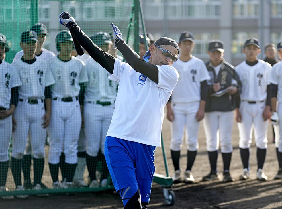 気温10度前後の寒空の下、ウオーミングアップの段階からさっそく走り方などを教え込んだ。自らバットを持つと「小学生の頃からやっている練習」と速いトスと遅いトスを織り交ぜたティー打撃を紹介。フリー打撃では右翼防球ネット奥の4階建て校舎屋上へ何度も放り込んで喝采を浴び「50歳でもやり続ければ飛距離が伸びている。みんなは吸収力が半端じゃないから、冬の間でめちゃくちゃ変わるよ」と笑顔を見せた。
