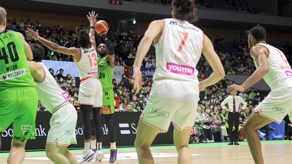 先発5人の平均身長では、レバンガが0.6センチ上回った。だが、広島は2021-22シーズンにレバンガでチーム初の得点王に輝いた206センチのPF/Cニック・メイヨ、208センチのPF/Cケリー・ブラックシアー・ジュニア(26)、さらに208センチの日本人C河田チリジ(24)と〝スリービッグマン〟の圧倒的な高さの前に、インサイド深くの侵入を許し、何度もゴールに叩き込まれた。