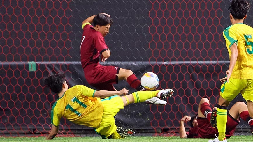 開始早々の前半6分に北海が1点を先取。いきなり先制パンチを喰らう形となったが、決して下を向かなかった。同32分にFW和嶋陽佳(3年)が同点ゴールをゲット。再び勝ち越されて迎えた終了間際の後半38分にはDF鈴木奏翔(3年)が土壇場で同点弾を決めてみせた。