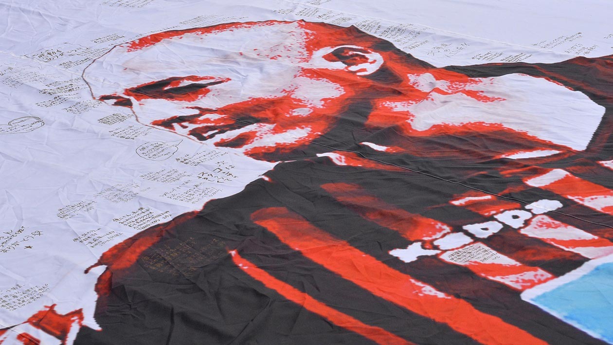 今後は23日の新さっぽろサンピアザなど、札幌市内4カ所と旭川市役所でも寄せ書きの場を設ける。(株)コンサドーレの谷保智也さんは「伸二さんの思い出や様々な思いが皆さんにもあると思います。その思いをこのバナーにぜひ書いていただきたいので、今後の5カ所にも来ていただければと思います」と、ファン・サポーターへ協力を呼びかけた。