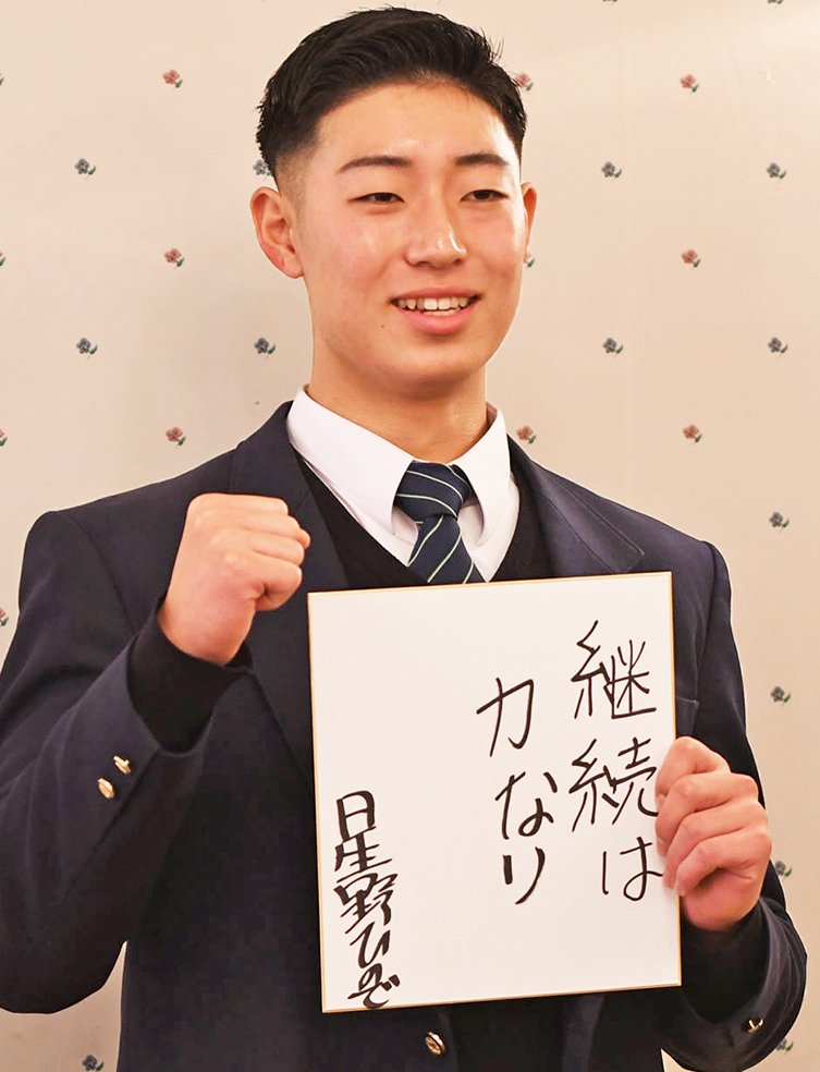 大切にしている両親からの教えがある。「自分で決めたことは、最後までしっかりやるということです」。この日、仮契約を終えた後、写真撮影用の色紙には「継続は力なり」と記した。親元を離れても〝金言〟を忘れず、やるべきことをコツコツと積み上げていく覚悟だ。
