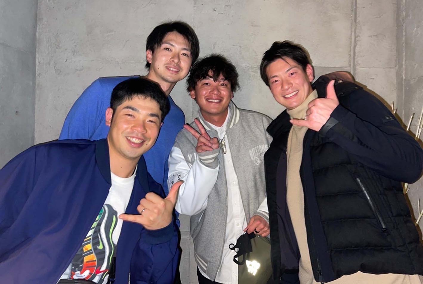 今でも深い交流は続いている(左から)近藤、上沢、石川、松本剛の同期4人(上沢提供)