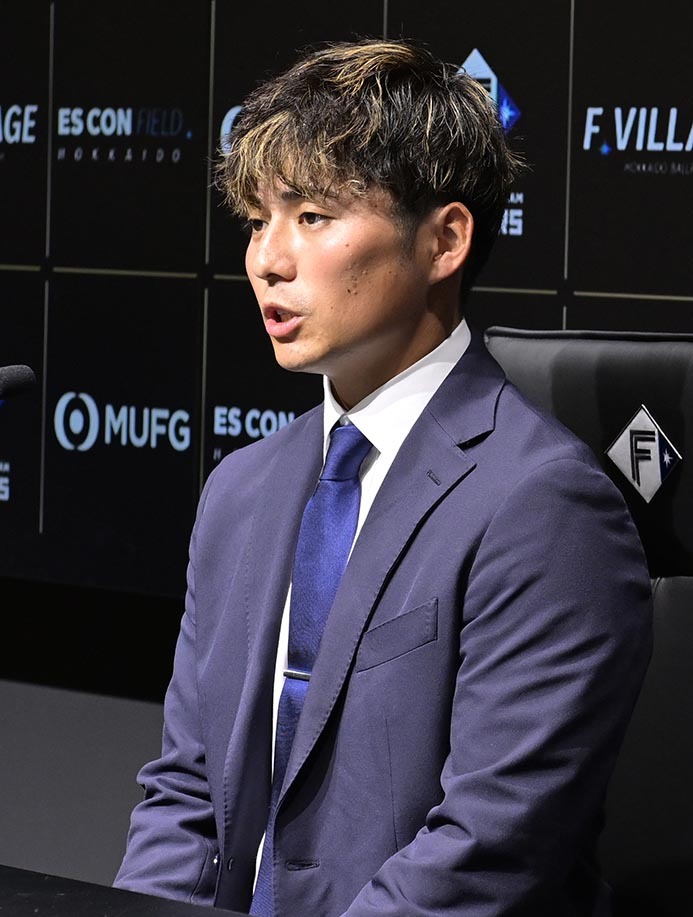 契約交渉を終え、会見する上川畑(撮影・小田岳史)