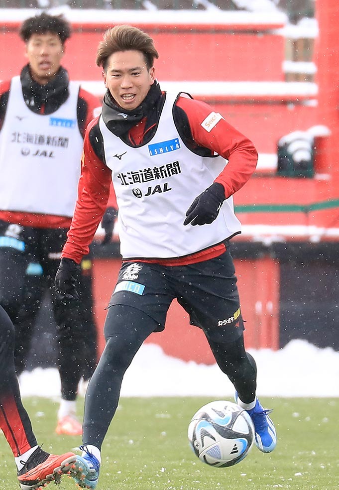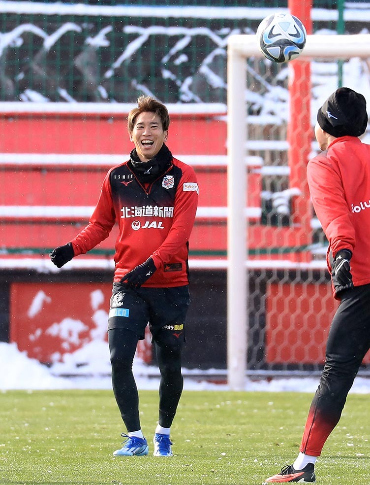 北海道コンサドーレ札幌は12月3日に行われる浦和レッズとの今季最終戦(札幌ドーム)へ向け、除雪した4分の1のピッチを使って10対10のパスゲームを行うなど精力的に汗を流した。今季加入したMF浅野雄也(26)は前節のFC東京戦でシーズン12得点目をマーク。浦和戦でゴールを決めると、2019年にFW鈴木武蔵(29、現G大阪)の持つクラブJ1日本人最多得点記録に並ぶ。