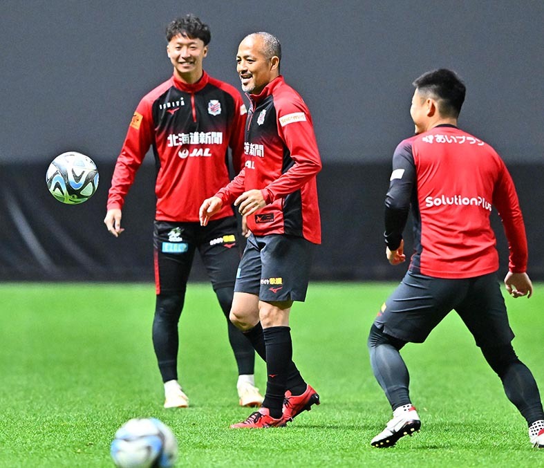 北海道コンサドーレ札幌のトレーニングの舞台はこの日から札幌ドームへ。全選手の中で真っ先に会場へ姿を現したMF小野伸二(44)は全メニューをしっかり消化した。11対11ではわずかにゴール上に外れたものの、華麗なループシュートを披露。自身のラストゲームの舞台となるピッチ上で軽快な動きを見せていた。