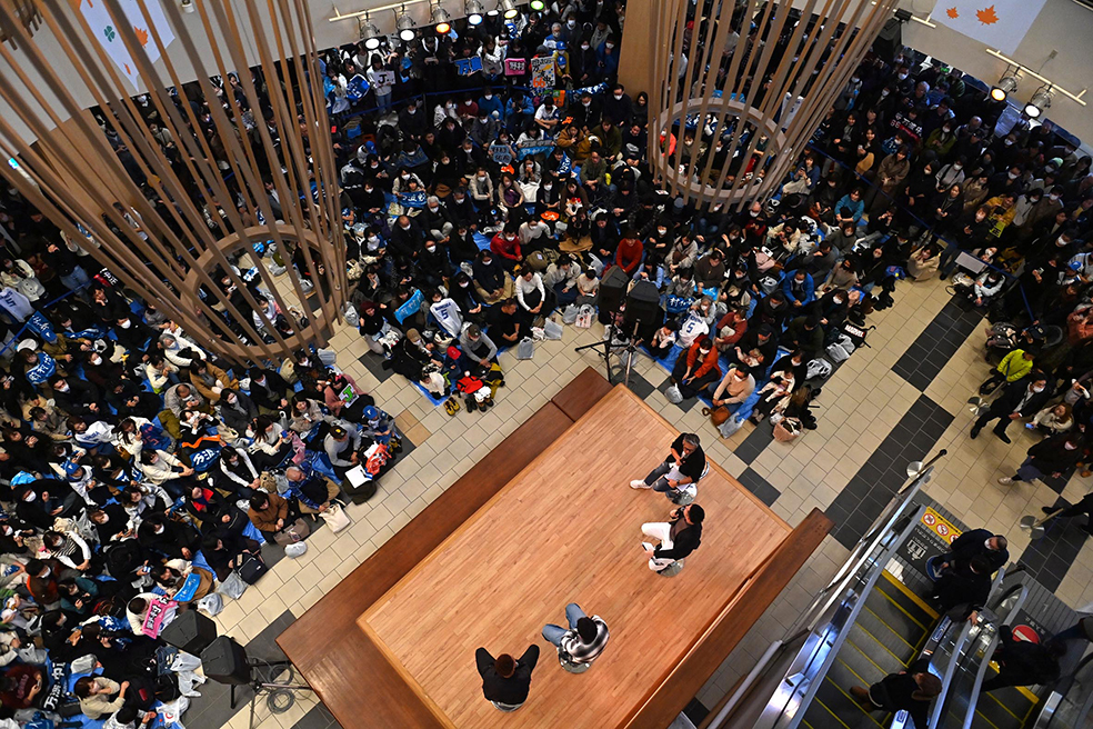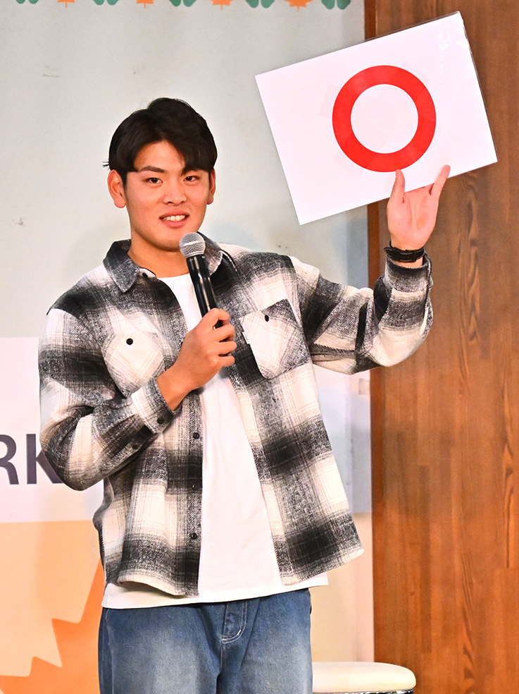 プレゼントを懸けたクイズ形式のゲームや抽選会を通してファンと触れ合い、イベントは終了。野村は「小っちゃい子たちの中で、万波のファンが多かった。来年はもっと活躍してマンチュウとジェイが好き、と言ってもらえるようにしたい」と笑顔で誓いを立てていた。
