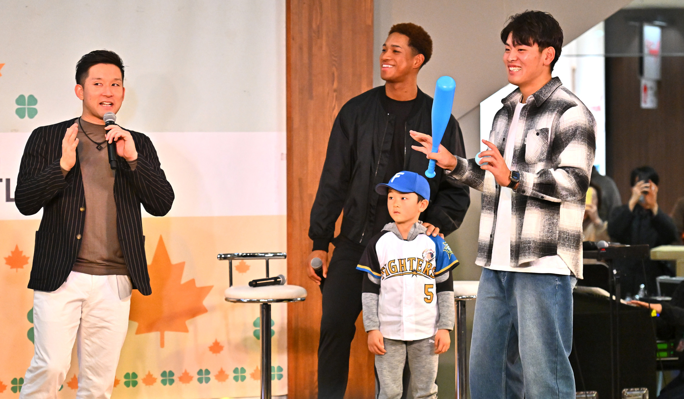 グッチー氏と日本ハムOBの杉谷氏がMCを務めた。今季はエスコンフィールド北海道が開業。新球場の好きな場所を問われ、万波は「選手ロッカーのソファですね。すげぇ、デカイんですよ。みんな座れます。ミーティングしているわけじゃなく、目を閉じて…」と少し恥ずかしそうにに告白した。
