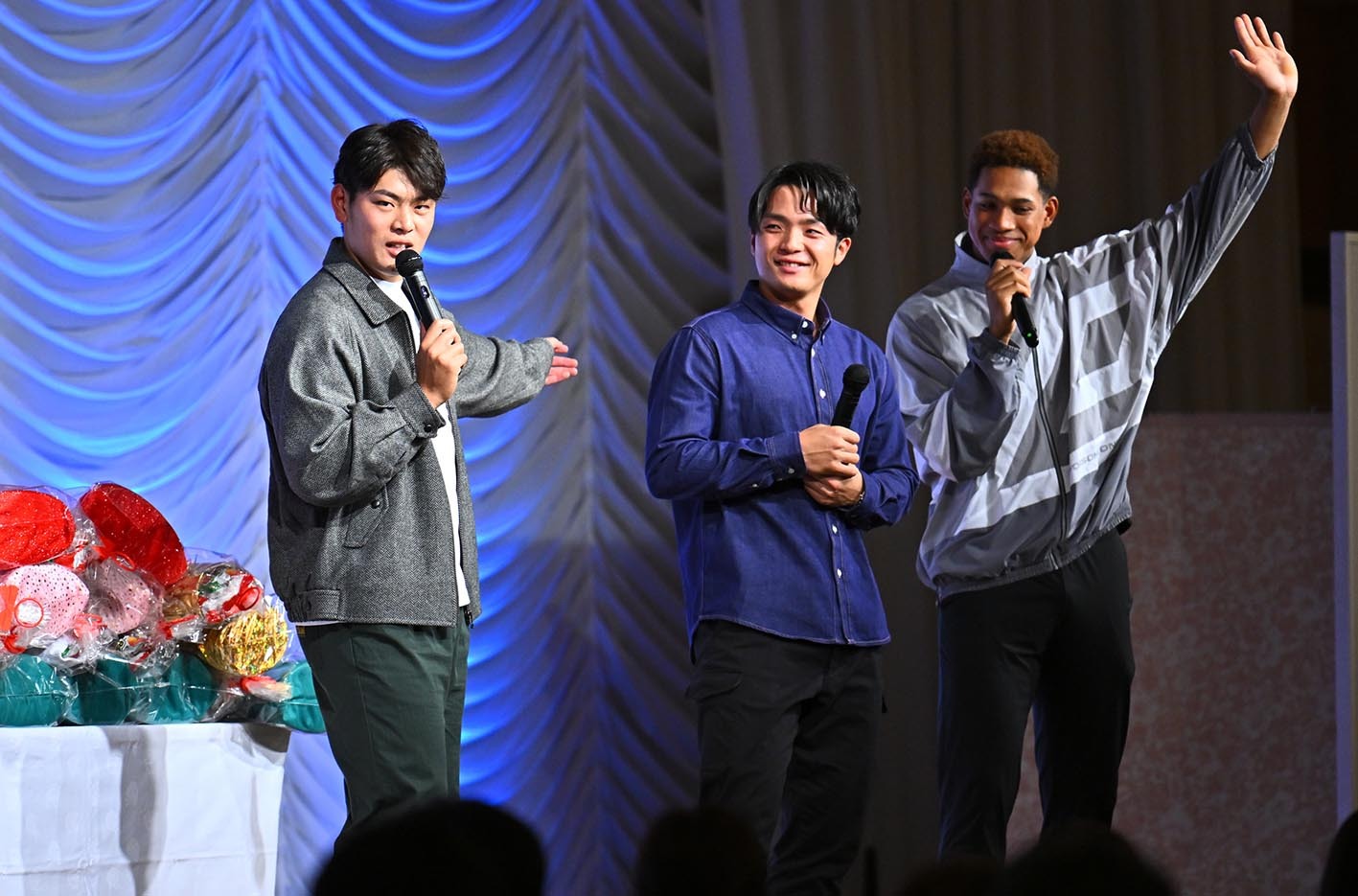 キレのあるトークで会場を盛り上げた(左から)野村、郡司、万波