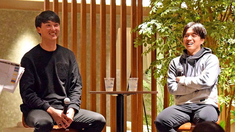 トークショーに出席した山本拓は、とっておきのエピソードで会場を盛り上げた。中日から移籍した当初の出来事を振り返り「郡司さんと2人で挨拶をするため、初めて監督室へ行ったときに、新庄監督から『ずっと、めちゃめちゃ欲しかったんだよ!』と言われました。それがすごく嬉しくてキュンとしちゃいました。その時点でやる気がバンと上がって、この球団で頑張ろうという決意が固まりました」と秘話を明かして、会場を沸かせた。