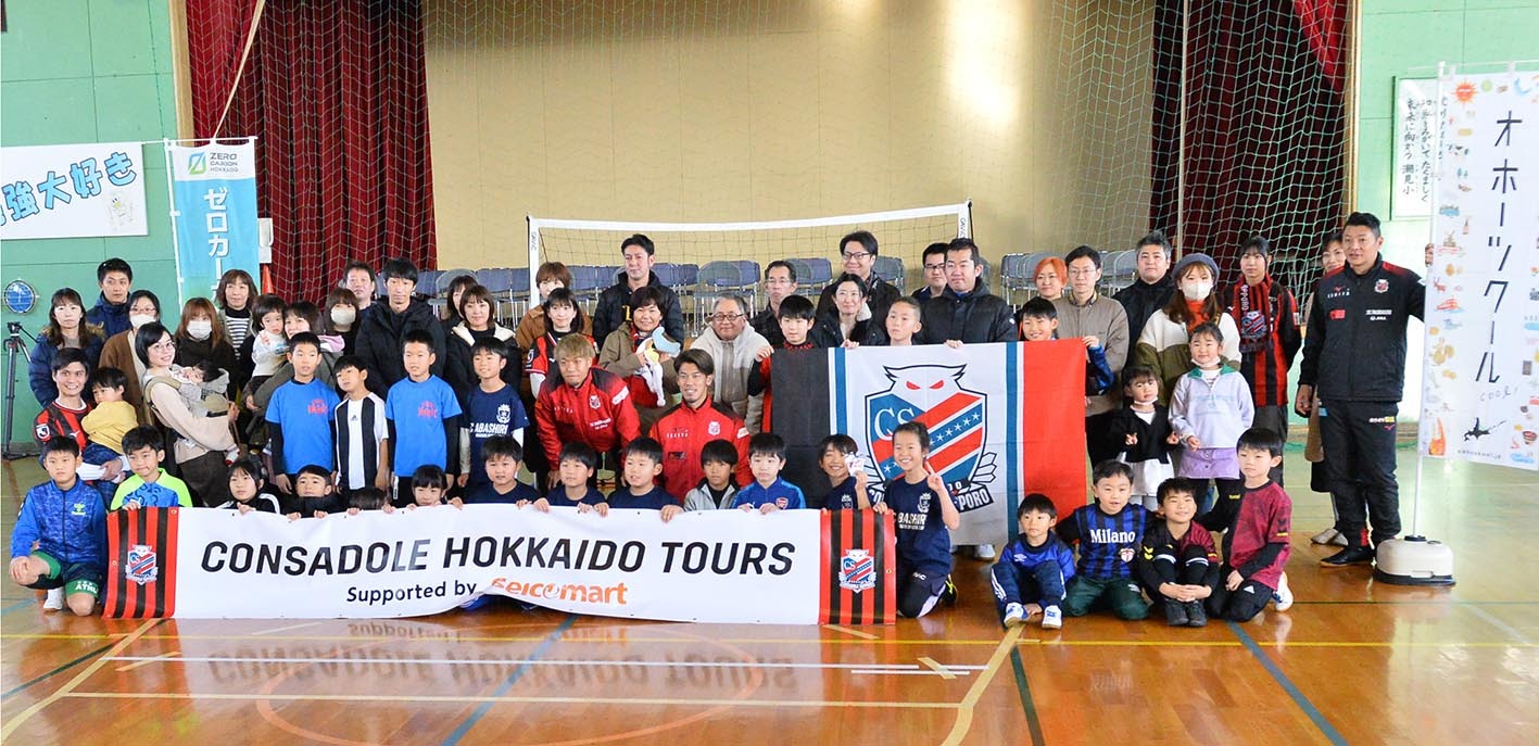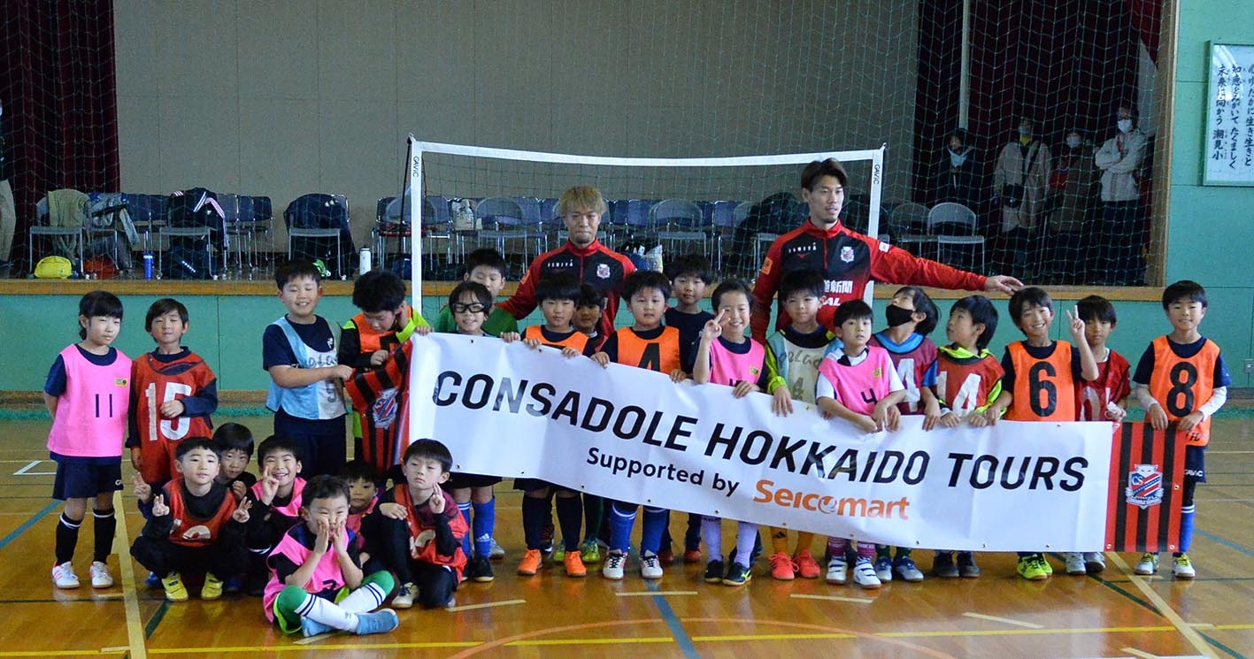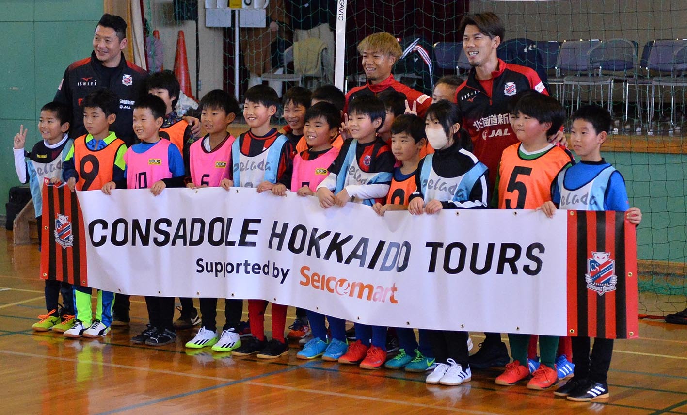 北海道コンサドーレ札幌の選手たちが北海道の各市町村を訪問する『CONSADOLE HOKKAIDO TOURS』。道東コースのツアーにはGK高木駿(34)とMF駒井善成(31)、河合竜二CRC(45)の3人が参加した。