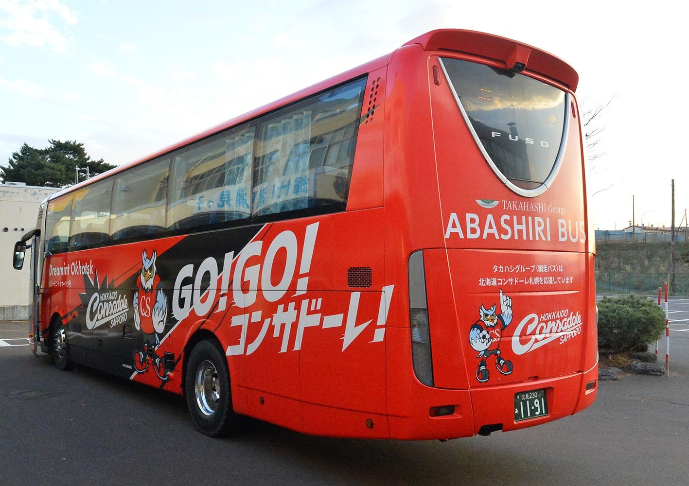 移動はコンサドーレのラッピングバス